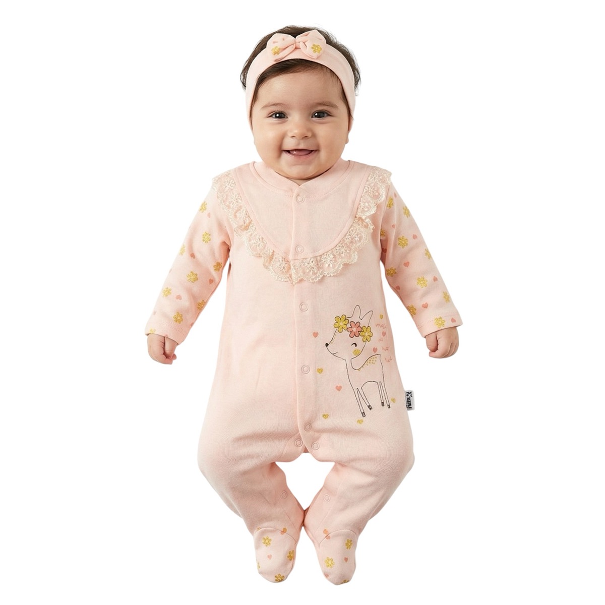 Το ολόσωμο φορμάκι Annora Baby με ασορτί κορδέλα συνδυάζει απαλότητα, πρακτικότητα και στυλ, κάνοντάς το ιδανικό για τις καθημερινές ανάγκες του μωρού σας. Κατασκευασμένο από 100% βαμβάκι, προσφέρει μοναδική αίσθηση απαλότητας, φροντίζοντας το ευαίσθητο βρεφικό δέρμα. Το λεπτό του ύφασμα είναι κατάλληλο για τις μεταβατικές εποχές της άνοιξης και του φθινοπώρου. Διαθέτει χαριτωμένο τύπωμα στο μπροστινό μέρος που δίνει μια παιχνιδιάρικη πινελιά, ενώ το άνοιγμα με τρουκς από πάνω έως κάτω διευκολύνει την αλλαγή ρούχου και πάνας, εξασφαλίζοντας πρακτικότητα και άνεση. Η ασορτί κορδέλα για τα μαλλιά ολοκληρώνει το σύνολο, δημιουργώντας μια κομψή εμφάνιση που μπορεί να φορεθεί καθημερινά αλλά και σε ιδιαίτερες περιστάσεις.