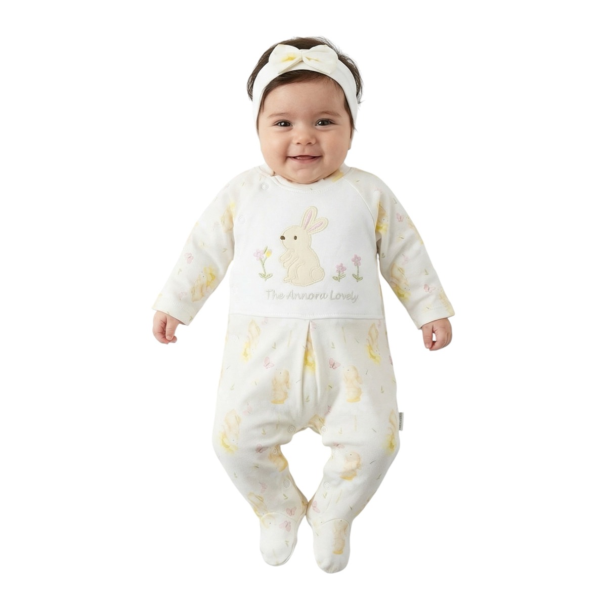 Απαλό, πρακτικό και κομψό, το ολόσωμο φορμάκι Annora Baby με ασορτί κορδέλα είναι η τέλεια επιλογή για το μωρό σας. Κατασκευασμένο από 100% βαμβάκι, εξασφαλίζει απαλότητα και άνεση, ενώ το εκρού χρώμα του χαρίζει διαχρονική κομψότητα. Το μπροστινό μέρος διακοσμείται με απλικέ σχέδιο και τύπωμα, δίνοντας μια χαριτωμένη πινελιά. Χάρη στο άνοιγμα με τρουκς στον ώμο και στο κάτω μέρος, η αλλαγή πάνας γίνεται γρήγορα και εύκολα, διευκολύνοντας την καθημερινότητα. Η ασορτί κορδέλα για τα μαλλιά ολοκληρώνει το σετ, κάνοντάς το ιδανικό για καθημερινές αλλά και πιο ξεχωριστές στιγμές. Ιδανικό για την άνοιξη και το φθινόπωρο, είναι ένα ευκολοφόρετο κομμάτι που συνδυάζει στυλ και λειτουργικότητα.