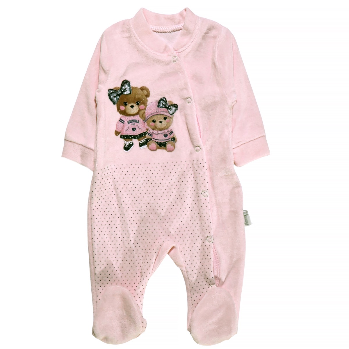 Το ολόσωμο βελουτέ φορμάκι με σκουφάκι Annora Baby σε ροζ χρώμα αποτελεί την ιδανική επιλογή για τις κρύες μέρες του χειμώνα. Κατασκευασμένο από βελουτέ βαμβακερό ύφασμα με σύνθεση 80% βαμβάκι και 20% πολυεστέρα, προσφέρει τη ζεστασιά και την άνεση που χρειάζεται το μωρό. Τα απλικέ σχέδια στο εμπρός μέρος χαρίζουν χαριτωμένη εμφάνιση, ενώ το άνοιγμα με τρουκς από τον λαιμό έως κάτω διευκολύνει σημαντικά το άλλαγμα. Το ασορτί σκουφάκι που το συνοδεύει ολοκληρώνει το σετ και προστατεύει από το κρύο. Ένα χειμωνιάτικο ρούχο σχεδιασμένο για κοριτσάκια, κατάλληλο για την καθημερινότητα και υπέροχη επιλογή για δώρο.