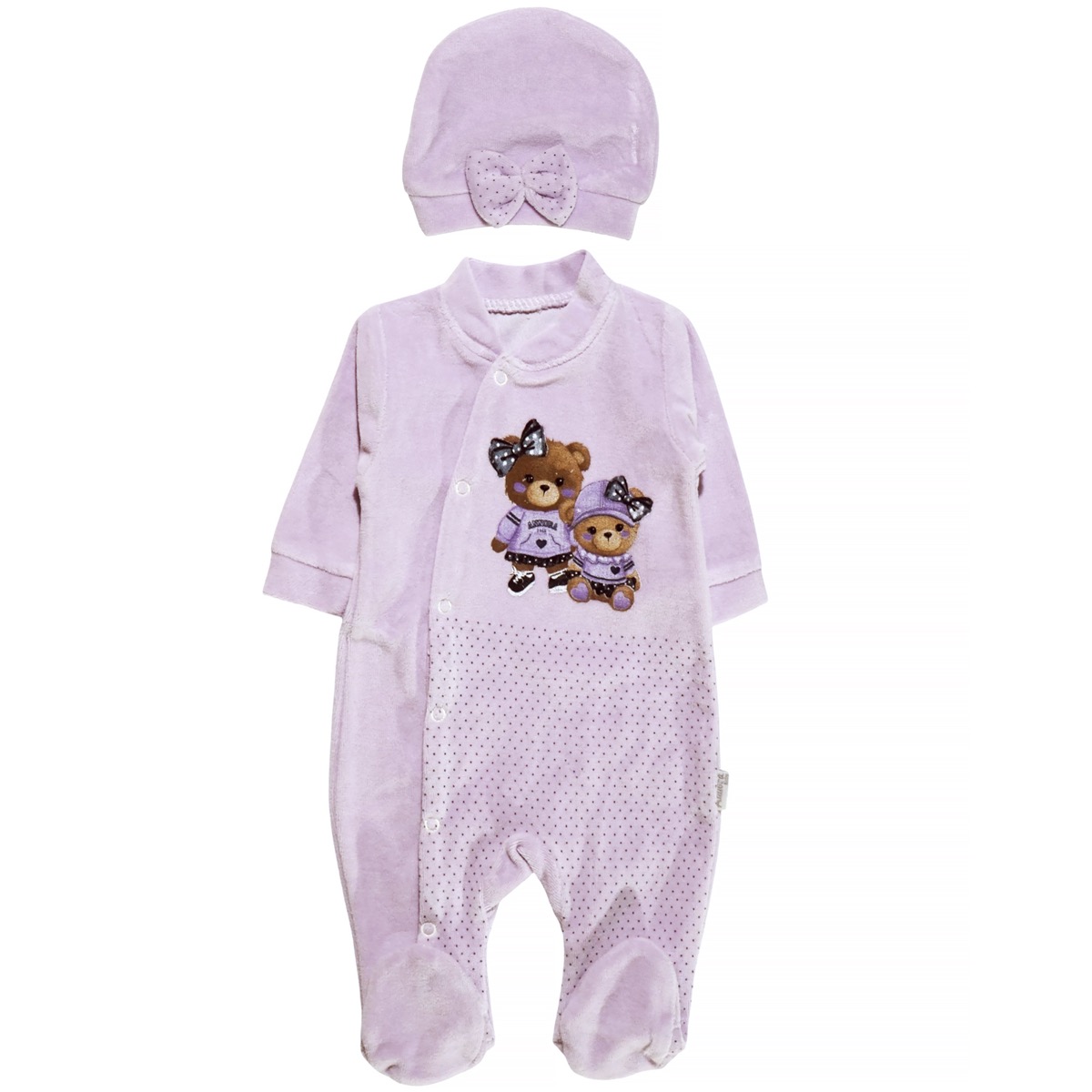 Το ολόσωμο βελουτέ φορμάκι με σκουφάκι Annora Baby σε μοβ χρώμα είναι η απόλυτη λύση για τις χειμερινές ημέρες. Φτιαγμένο από βελουτέ βαμβακερό ύφασμα με σύνθεση 80% βαμβάκι και 20% πολυεστέρα, εξασφαλίζει ζεστασιά και άνεση στο ευαίσθητο δέρμα του μωρού. Τα απλικέ σχέδια στο εμπρός μέρος δίνουν γλυκιά και χαριτωμένη εμφάνιση, ενώ το άνοιγμα με τρουκς από τον λαιμό έως κάτω κάνει το άλλαγμα απλό και γρήγορο. Συνοδεύεται από ασορτί σκουφάκι που ολοκληρώνει το σετ και κρατά το κεφαλάκι ζεστό. Ένα χειμωνιάτικο ρούχο για κοριτσάκια που συνδυάζει πρακτικότητα και στιλ, ιδανικό για καθημερινή χρήση.