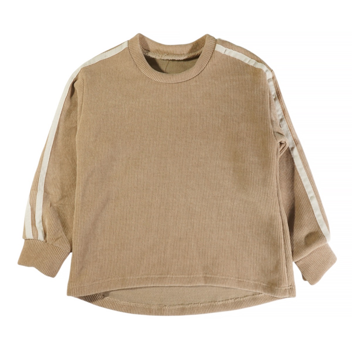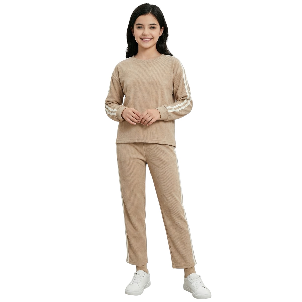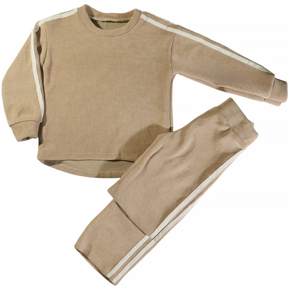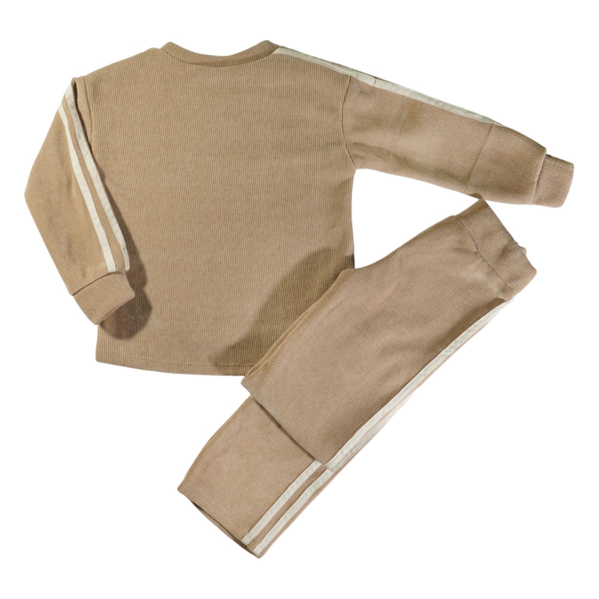 Το πλεκτό σετ μπλούζα με παντελόνα AZ σε ζεστό μπεζ χρώμα είναι ιδανικό για τον χειμώνα, προσφέροντας άνεση και στιλ. Η μπλούζα ξεχωρίζει με το ρέλι στα μανίκια, που δίνει μία λεπτομέρεια φινέτσας στο απλό της σχέδιο. Μακρύτερη στο πίσω μέρος. Η παντελόνα διαθέτει λάστιχο περιμετρικά στη μέση και ρέλι στα πλαϊνά, εξασφαλίζοντας καλή εφαρμογή και κομψό αποτέλεσμα. Με σύνθεση από 95% πολυεστέρα και 5% ελαστάνη, το πλεκτό ύφασμα κρατά ζεστή τη μικρή και προσφέρει ευχάριστη αίσθηση στο σώμα. Πρόκειται για μια πρακτική και στιλάτη επιλογή που ταιριάζει σε καθημερινές αλλά και πιο ιδιαίτερες στιγμές του χειμώνα.