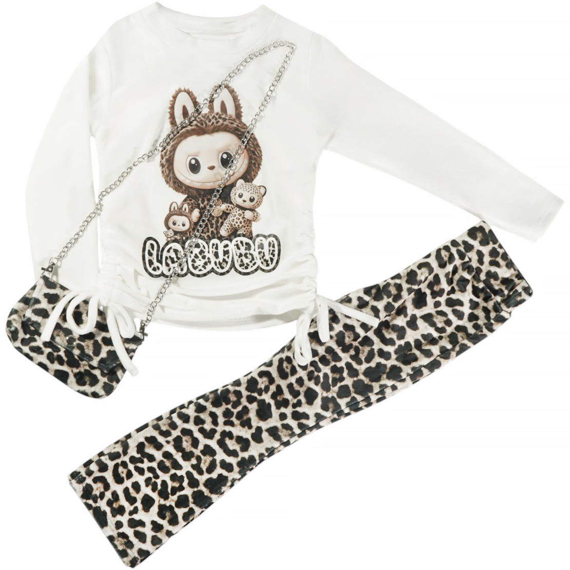 Το βελουτέ σετ μπλούζα με παντελόνι flair και τσαντάκι AZ αποτελεί μια ξεχωριστή επιλογή για κορίτσια που θέλουν άνεση και στιλ τον χειμώνα. Η εκρού μπλούζα διαθέτει όμορφο τύπωμα και κορδόνια στα πλαϊνά που σφίγγουν, προσφέροντας ρυθμιζόμενη εφαρμογή και μοντέρνα εμφάνιση. Το λεοπάρ παντελόνι με λάστιχο στη μέση εξασφαλίζει άνεση και ελευθερία στις κινήσεις, ενώ το ασορτί λεοπάρ τσαντάκι συμπληρώνει το σύνολο με μια διασκεδαστική και στιλάτη λεπτομέρεια. Η σύνθεση από 92% πολυεστέρα και 8% ελαστάνη εξασφαλίζει απαλότητα και ελαστικότητα, ιδανικά για τις κρύες μέρες του χειμώνα. Με αυτό το σετ, η μικρή σας θα είναι πάντα έτοιμη για παιχνίδι και βόλτες με άνεση και στιλ.