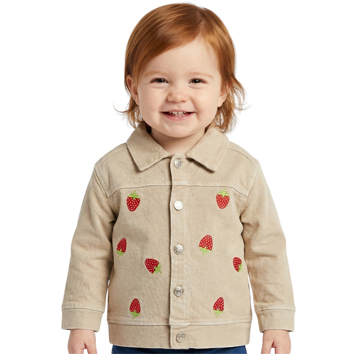 Το βρεφικό τζιν μπουφάν από την Baby Buu είναι μια πολύ γλυκιά και τρυφερή επιλογή για τις πρώτες εμφανίσεις των κοριτσιών σας. Η λεπτή μπεζ απόχρωσή του αναδεικνύεται μοναδικά από τα χαριτωμένα απλικέ σχέδια με φραουλίτσες στο μπροστινό μέρος, προσθέτοντας μια παιχνιδιάρικη νότα. Διαθέτει άνετο άνοιγμα με κουμπιά για εύκολη χρήση και εφαρμογή, ενώ η σύνθεσή του από 100% βαμβάκι εξασφαλίζει τη φυσική απαλότητα και την κατάλληλη δροσιά για το ευαίσθητο βρεφικό δέρμα. Ιδανικό για τα δροσερά καλοκαιρινά βράδια και τις ανοιξιάτικες ή φθινοπωρινές βόλτες της μικρής σας.