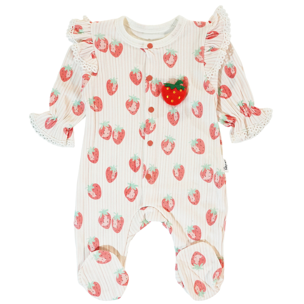 Baby Mii ολόσωμο φορμάκι από λεπτό ύφασμα «Strawberry Hug»