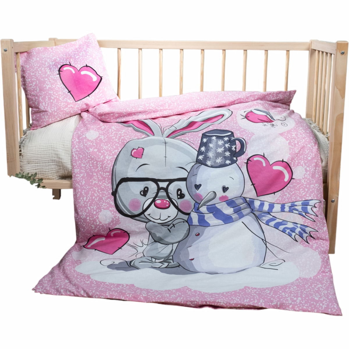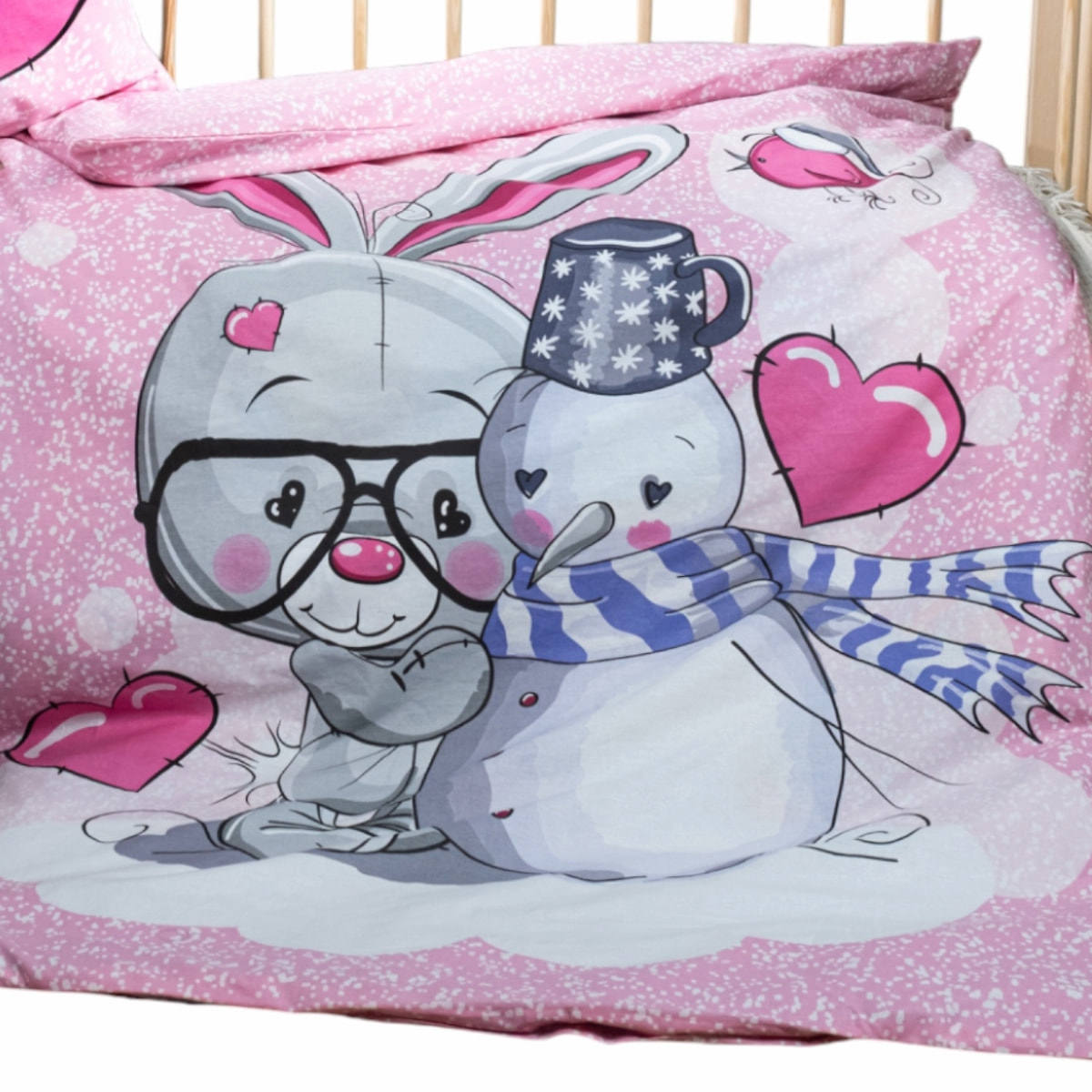 Μεταμορφώστε το δωμάτιο που έχουν τα κοριτσάκια σας σε ένα παραμυθένιο σκηνικό με αυτή την πολύχρωμη παιδική παπλωματοθήκη και μαξιλαροθήκη από τη Baby One. Το υπέροχο σχέδιο με το λαγουδάκι και τον χιονάνθρωπο χαρίζει μια εξαιρετικά γλυκιά και παιχνιδιάρικη εικόνα, κάνοντας την ώρα του ύπνου την πιο αγαπημένη τους στιγμή. Η παπλωματοθήκη, με διαστάσεις 100×150, κλείνει εύκολα με πρακτικά κουμπιά για να αλλάζετε τα σκεπάσματα χωρίς καμία ταλαιπωρία, ενώ η ασορτί μαξιλαροθήκη, με διαστάσεις 35×45, ολοκληρώνει ιδανικά το σύνολο. Κατασκευασμένο εξ ολοκλήρου από 100% βαμβάκι, το σετ προσφέρει μια απόλυτα φυσική αγκαλιά που σέβεται το ευαίσθητο δερματάκι τους. Αυτή η ποιοτική σύνθεση τους εξασφαλίζει τον πιο άνετο και ζεστό ύπνο, δημιουργώντας μια πραγματικά στιλάτη και τρυφερή προσθήκη για τις χειμωνιάτικες νύχτες.