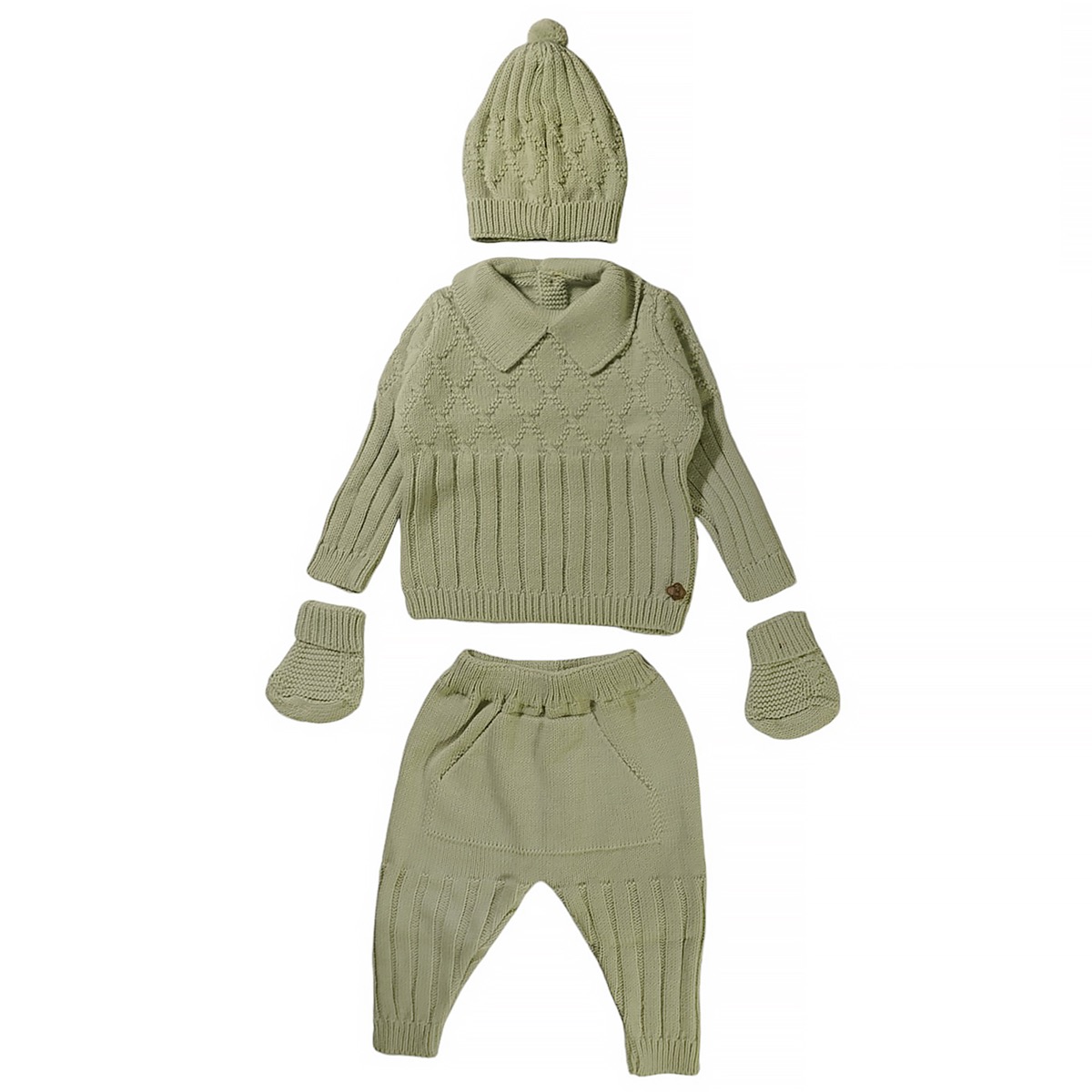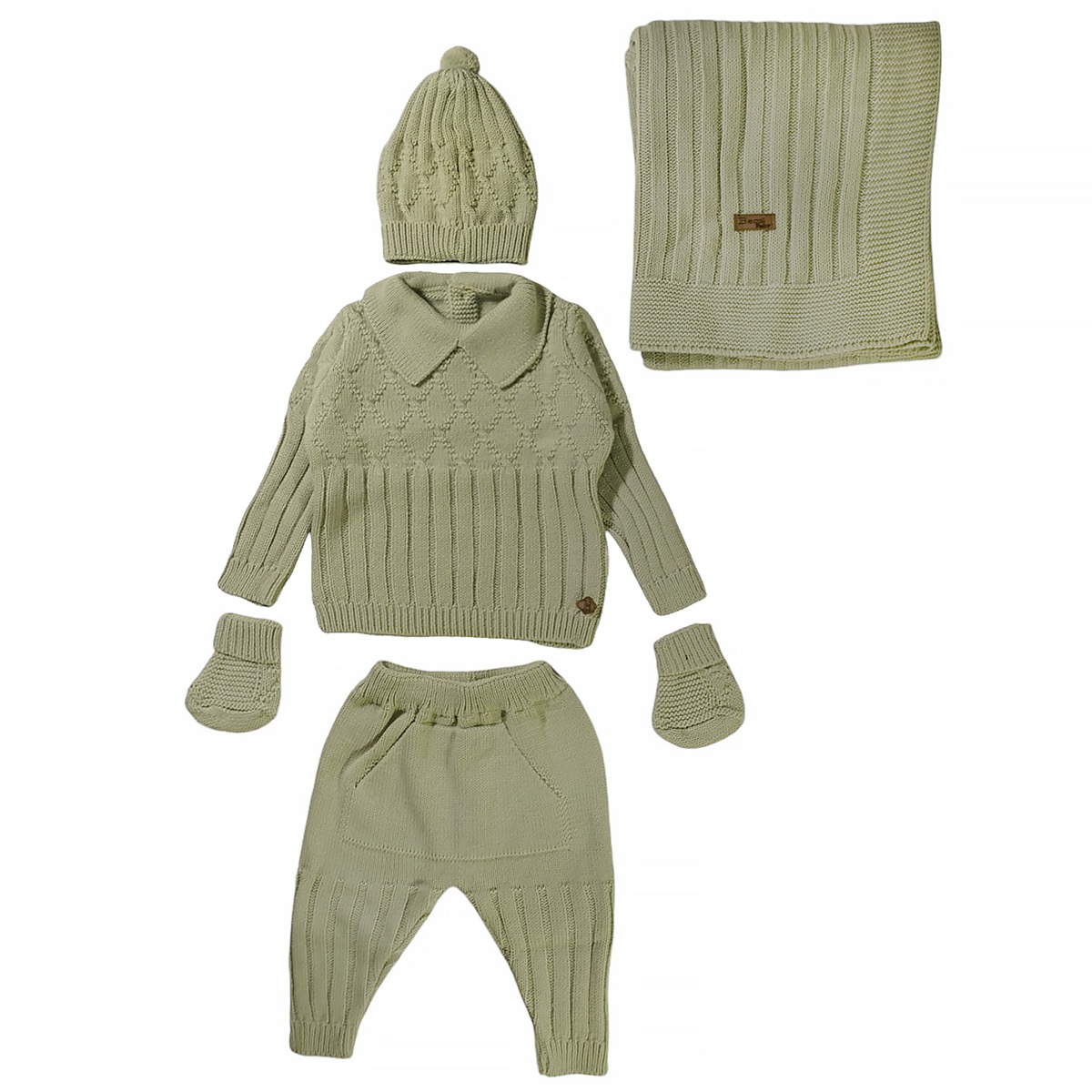 Το σετ δώρου πέντε τεμαχίων της Becol Baby σε βεραμάν απόχρωση είναι η ιδανική επιλογή για να καλωσορίσετε ένα νεογέννητο! Κατασκευασμένο από απαλό νήμα, που περιλαμβάνει 80% βαμβάκι και 20% πολυεστέρα, αυτό το σετ προσφέρει άνεση και ζεστασιά για τα μωράκια. Περιλαμβάνει μια μπλούζα που ανοίγει με κουμπιά στο πίσω μέρος, παντελονάκι, σκουφάκι, γαντάκια και μια κουβερτούλα για το καροτσάκι, εξασφαλίζοντας ότι το μωρό σας θα είναι πάντα ζεστό και στιλάτο. Ιδανικό ως δώρο για νεογέννητο, αυτό το σετ θα ενθουσιάσει κάθε γονέα και θα προσφέρει την απαλή φροντίδα που χρειάζεται το μωράκι σας κατά τη διάρκεια του χειμώνα. Επιλέξτε το σετ Becol Baby για να κάνετε μια μοναδική και πρακτική επιλογή δώρου!