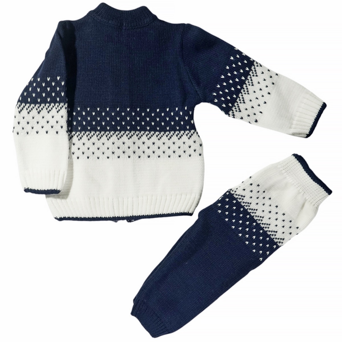 Το βρεφικό πλεκτό σετ της Becol είναι η τέλεια επιλογή για τα αγοράκια σας τον χειμώνα, προσφέροντας ζεστασιά και κομψό στιλ. Η μπλε και εκρού ζακέτα διαθέτει όμορφα σχέδια στην πλέξη και άνοιγμα με φερμουάρ για μεγαλύτερη πρακτικότητα. Το παντελόνι έχει επίσης σχέδια στην πλέξη και λάστιχο περιμετρικά στη μέση για άνετη εφαρμογή. Κατασκευασμένο από 100% ακρυλικό, το σετ εξασφαλίζει την ζεστασιά και την προστασία από το κρύο που χρειάζεται το μωρό σας τις χειμερινές μέρες, ενώ παράλληλα προσφέρει ένα κλασικό και κομψό ντύσιμο για κάθε περίσταση.