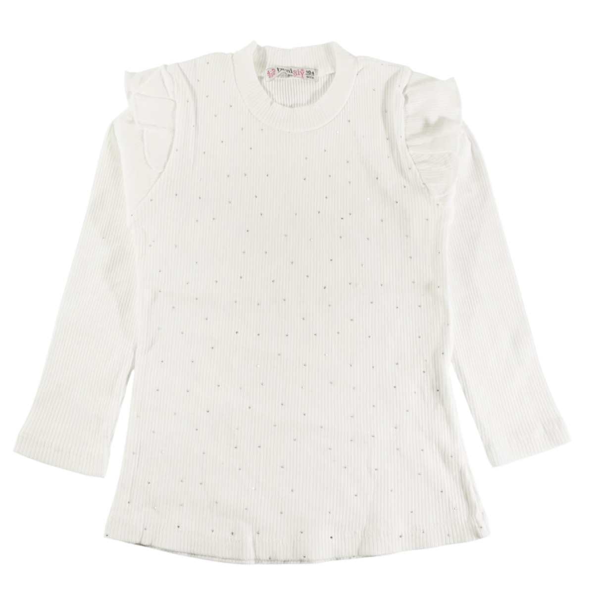 Η ριμπ μπλούζα της Benigiy σε εκρού απόχρωση αποτελεί μια φρέσκια και κομψή επιλογή για τις μεταβατικές εποχές. Κατασκευασμένη από λεπτό ύφασμα με σύνθεση 95% βαμβάκι και 5% ελαστάνη, εξασφαλίζει απαλότητα και ευελιξία που χρειάζονται τα κορίτσια στην καθημερινότητά τους. Τα στρασάκια στο μπροστινό μέρος δίνουν μια λαμπερή και παιχνιδιάρικη διάσταση, ενώ το ριμπ ύφασμα προσφέρει άψογη εφαρμογή. Ιδανική για την άνοιξη και το φθινόπωρο, αυτή η μπλούζα είναι εύκολη στο συνδυασμό με τζιν, φούστες ή σορτσάκια, δημιουργώντας casual αλλά κομψές εμφανίσεις για κάθε περίσταση.