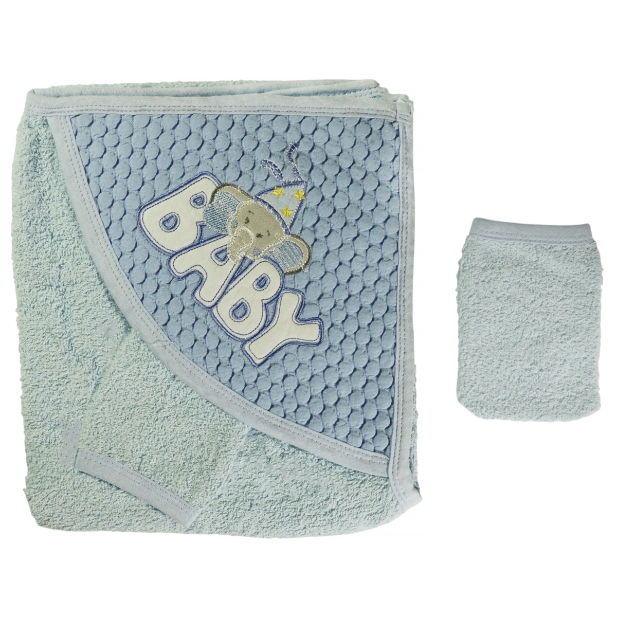Η βρεφική μπουρνουζοπετσέτα με γαντάκι μπάνιου Bibilish είναι η ιδανική επιλογή για το καθημερινό μπάνιο του μωρού. Σε όμορφη γαλάζια απόχρωση που ταιριάζει σε αγοράκια, διαθέτει κουκούλα με απλικέ σχέδιο που χαρίζει χαριτωμένη εμφάνιση και προστατεύει το κεφαλάκι μετά το μπάνιο. Το σετ περιλαμβάνει και γαντάκι μπάνιου για πιο εύκολη περιποίηση, προσφέροντας πρακτικότητα και ολοκληρωμένη φροντίδα. Είναι φτιαγμένη από 100% βαμβάκι, προσφέροντας εξαιρετική απαλότητα, απορροφητικότητα και άνεση για το ευαίσθητο δερματάκι του μωρού. Ένα δώρο που συνδυάζει ποιότητα και λειτουργικότητα, ιδανικό για τους πρώτους μήνες ζωής.