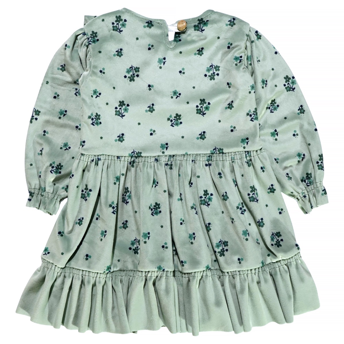Το βελουτέ φορεματάκι της Carmina Kids σε πράσινο χρώμα με λουλούδια είναι μια φρέσκια και ιδιαίτερη επιλογή για κορίτσια που αγαπούν τα λουλουδάτα μοτίβα. Κατασκευασμένο από 100% βαμβάκι, συνδυάζει την απαλότητα του φυσικού υφάσματος με την πλούσια υφή του βελουτέ, προσφέροντας ζεστασιά και άνεση. Τα βολάν και τα διακοσμητικά κουμπιά στο μπροστινό μέρος δίνουν μια vintage πινελιά, ενώ το φλοράλ μοτίβο προσθέτει χρώμα και ζωντάνια. Το άνοιγμα με κουμπί στο πίσω μέρος κάνει το ντύσιμο πρακτικό και εύκολο. Ιδανικό για τον χειμώνα, αυτό το φόρεμα συνδυάζεται όμορφα με καλσόν και μποτάκια, δημιουργώντας εμφανίσεις γεμάτες χάρη και προσωπικότητα.