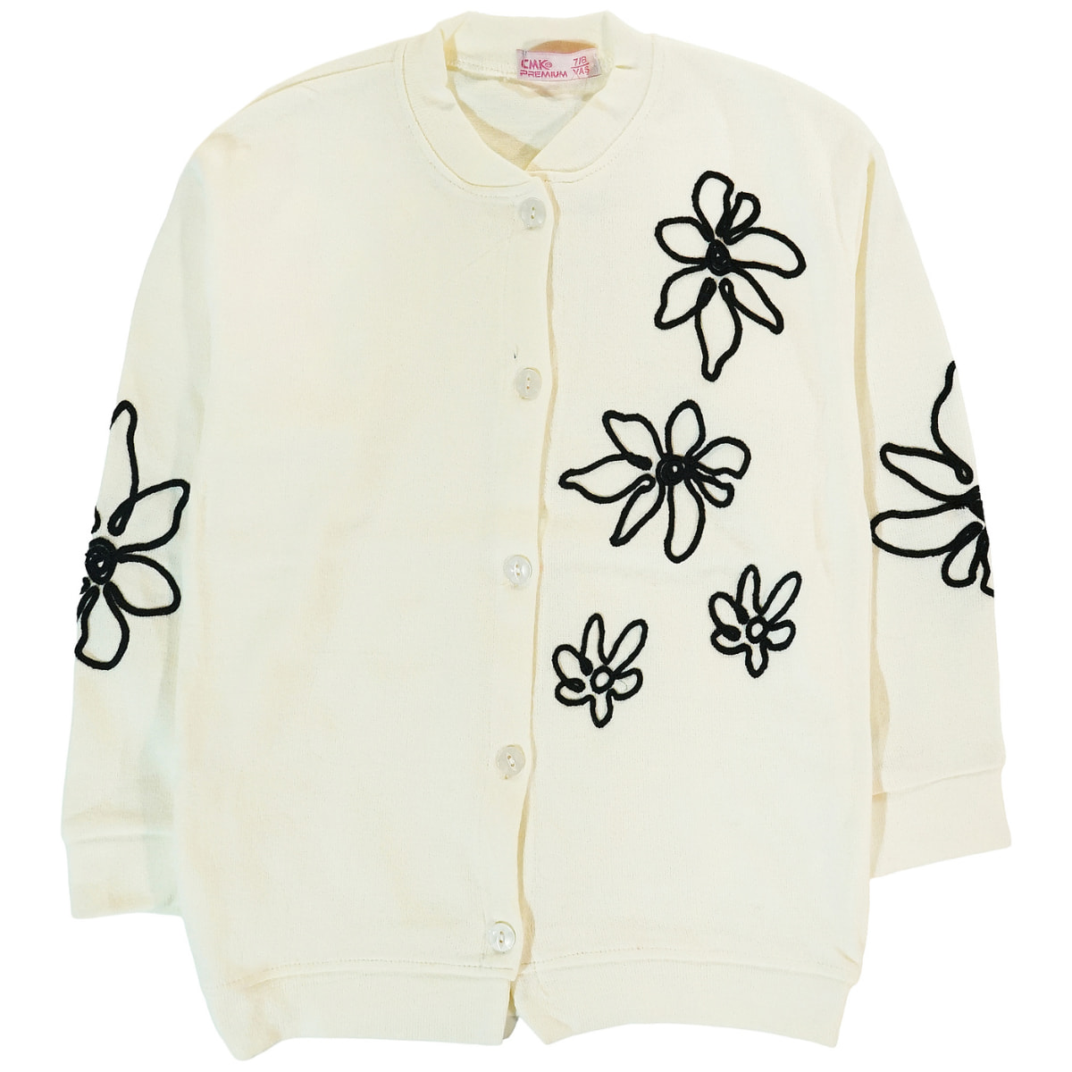 Η πλεκτή ζακετούλα από τη CMK Premium είναι μια αληθινά κομψή και τρυφερή προσθήκη για να ντύσετε το κοριτσάκι σας με χάρη τις δροσερές ημέρες της άνοιξης και του φθινοπώρου. Η γλυκιά εκρού βάση της αναδεικνύεται εντυπωσιακά από τα περίτεχνα κεντήματα με λουλούδια που είναι φτιαγμένα με μαύρη κλωστή στο μπροστινό μέρος, δημιουργώντας μια υπέροχη αντίθεση που μαγνητίζει τα βλέμματα και χαρίζει έναν αέρα μικρής κυρίας. Φτιαγμένη από ελαφρύ, λεπτό νήμα με σύνθεση 100% ακρυλικό, προσφέρει μια απαλή και χουχουλιάρικη αίσθηση που αγκαλιάζει το παιδικό σωματάκι χωρίς να το βαραίνει ή να το περιορίζει. Τα κουμπάκια στο μπροστινό μέρος κάνουν το ντύσιμο μια εύκολη και γρήγορη διαδικασία για εσάς. Είναι το τέλειο πανωφόρι για να ολοκληρώσει τις βόλτες και τις γιορτινές της εμφανίσεις, συνδυάζοντας την απόλυτη άνεση με ένα πραγματικά ξεχωριστό και ρομαντικό στιλ.