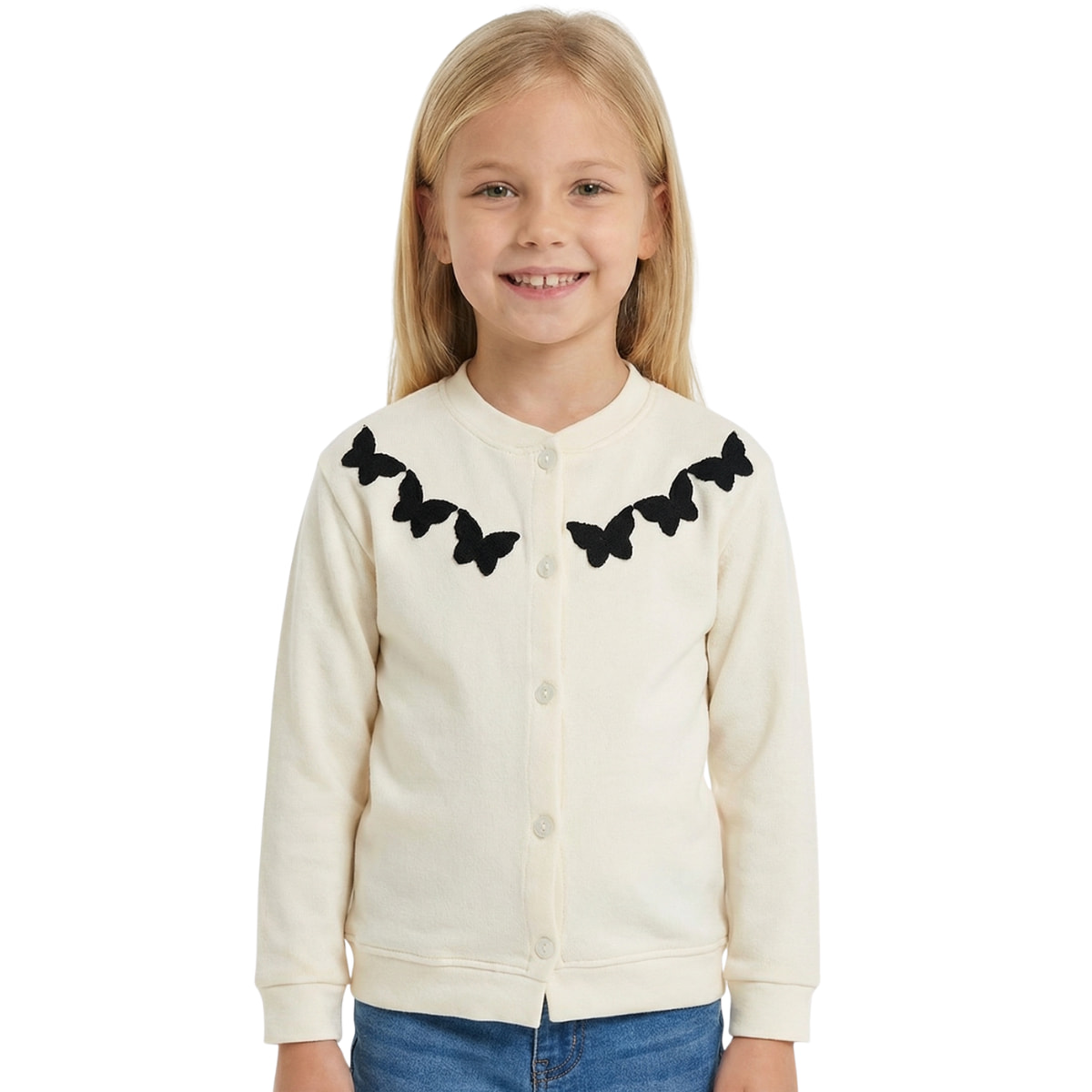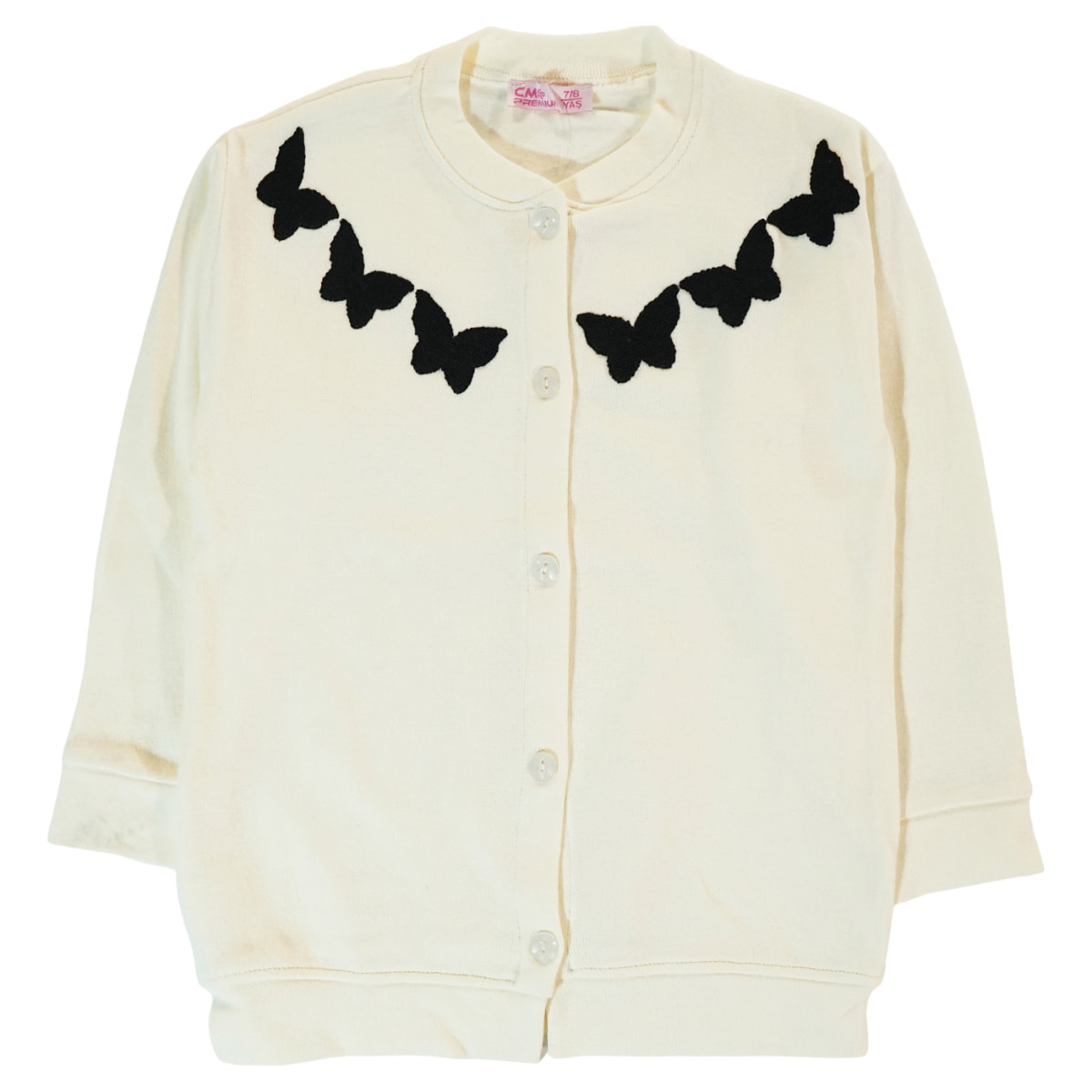 Η πλεκτή ζακετούλα από τη CMK Premium είναι μια ονειρεμένη και εξαιρετικά τρυφερή επιλογή για να συνοδεύσει τις ανοιξιάτικες και φθινοπωρινές βόλτες του κοριτσιού σας. Η φωτεινή και γλυκιά εκρού απόχρωση δημιουργεί τον τέλειο καμβά για τα πανέμορφα κεντήματα με πεταλούδες που είναι φτιαγμένα με μαύρη κλωστή στο μπροστινό μέρος, προσφέροντας μια εντυπωσιακή και ταυτόχρονα ρομαντική αντίθεση που θα λατρέψετε. Είναι πλεγμένη από εξαιρετικά ελαφρύ και λεπτό νήμα με σύνθεση 100% ακρυλικό, αγκαλιάζοντας απαλά το παιδικό σωματάκι με μια χουχουλιάρικη αίσθηση που χαρίζει ζεστασιά χωρίς να εμποδίζει το παιχνίδι και τις κινήσεις της. Το πρακτικό άνοιγμα με τα κουμπάκια διευκολύνει σημαντικά το καθημερινό ντύσιμο, επιτρέποντας της να ετοιμάζεται γρήγορα και εύκολα. Πρόκειται για ένα πραγματικά ξεχωριστό πανωφόρι που συνδυάζει την ποιότητα με τη φινέτσα, κάνοντας κάθε της εμφάνιση να μοιάζει παραμυθένια.