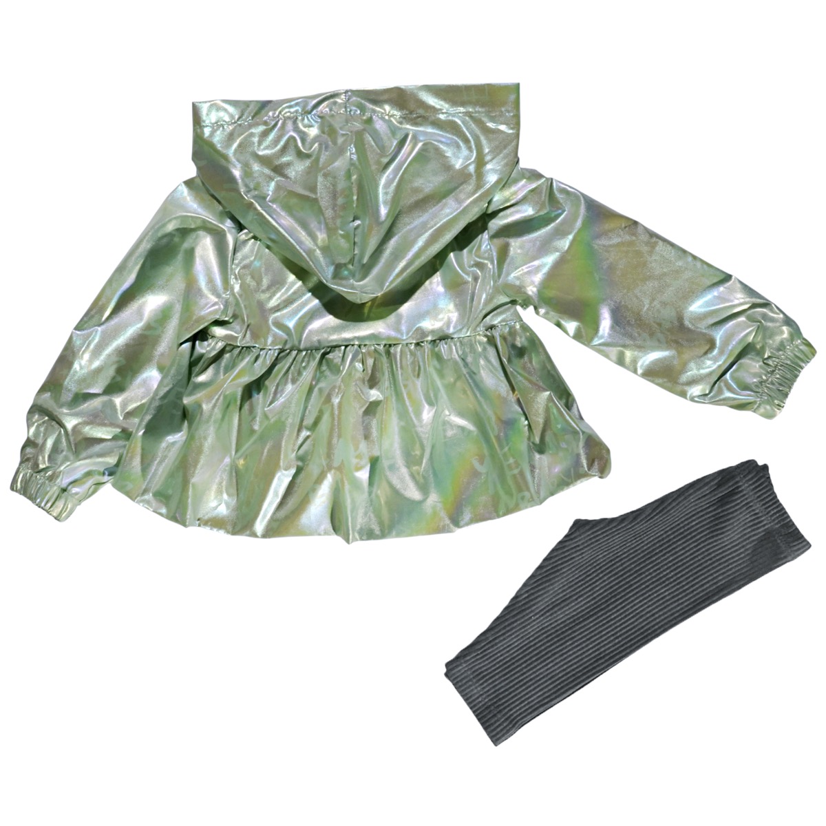 Το σετ τεσσάρων τεμαχίων της Cocosiss είναι η ιδανική επιλογή για τα κοριτσάκια σας την άνοιξη και το φθινόπωρο, προσφέροντας ολοκληρωμένο και πρακτικό ντύσιμο. Το πράσινο μπουφάν με κουκούλα είναι κατασκευασμένο από αδιάβροχο ύφασμα με εσωτερική επένδυση από βαμβακερή φόδρα και άνοιγμα με φερμουάρ για προστασία από τη βροχή. Η εκρού μπλούζα είναι από λεπτό ύφασμα, διαθέτει όμορφο τύπωμα στο εμπρός μέρος και άνοιγμα με τρουκς στον ώμο. Το γκρι κολάν έχει λάστιχο περιμετρικά στη μέση για άνετη εφαρμογή, ενώ το σετ συνοδεύεται από ένα χαριτωμένο λούτρινο κρεμαστό αρκουδάκι σε καφέ χρώμα. Το μπουφάν είναι από 100% πολυεστέρα, ενώ η μπλούζα και το κολάν από 100% βαμβάκι, εξασφαλίζοντας άνεση, προστασία και στιλ σε κάθε περίσταση.