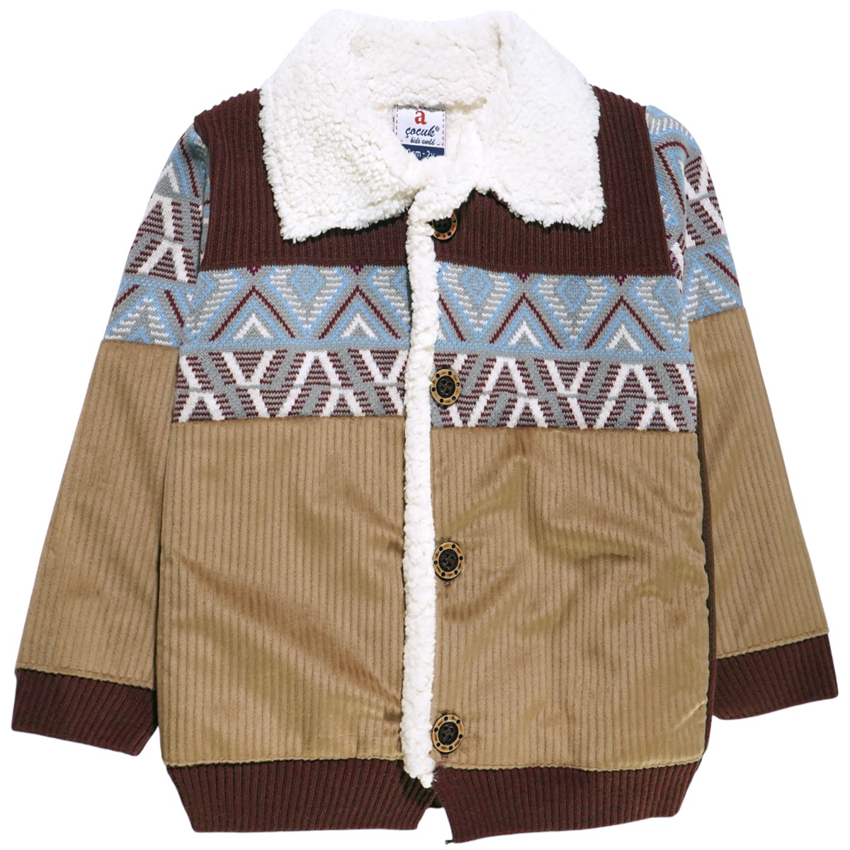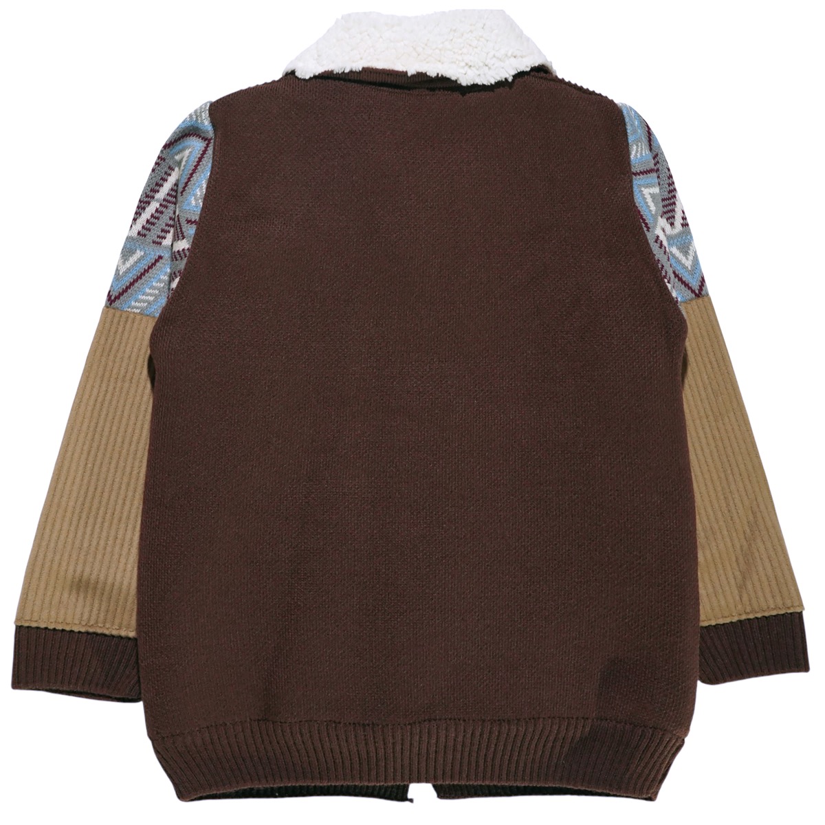 Η καφέ ζακετούλα με γουνάκι από τη συλλογή Cocuk Kids είναι η ιδανική επιλογή για αγόρια που θέλουν άνεση και στιλ τους κρύους μήνες. Κατασκευασμένη από απαλό πλεκτό ύφασμα με βελουτέ λεπτομέρειες, προσφέρει ζεστασιά και ξεχωριστή υφή. Το εσωτερικό της είναι επενδυμένο με γούνα τύπου προβατάκι, εξασφαλίζοντας άνεση και προστασία από το κρύο. Διαθέτει άνοιγμα με κουμπιά στο εμπρός μέρος για εύκολη εφαρμογή και χαριτωμένα σχέδια που δίνουν παιχνιδιάρικο χαρακτήρα στο ντύσιμο του παιδιού. Ιδανική για καθημερινές βόλτες, το σχολείο ή οικογενειακές εξόδους, αυτή η πλεκτή ζακέτα συνδυάζει πρακτικότητα και μοντέρνο παιδικό στιλ για τον χειμώνα.