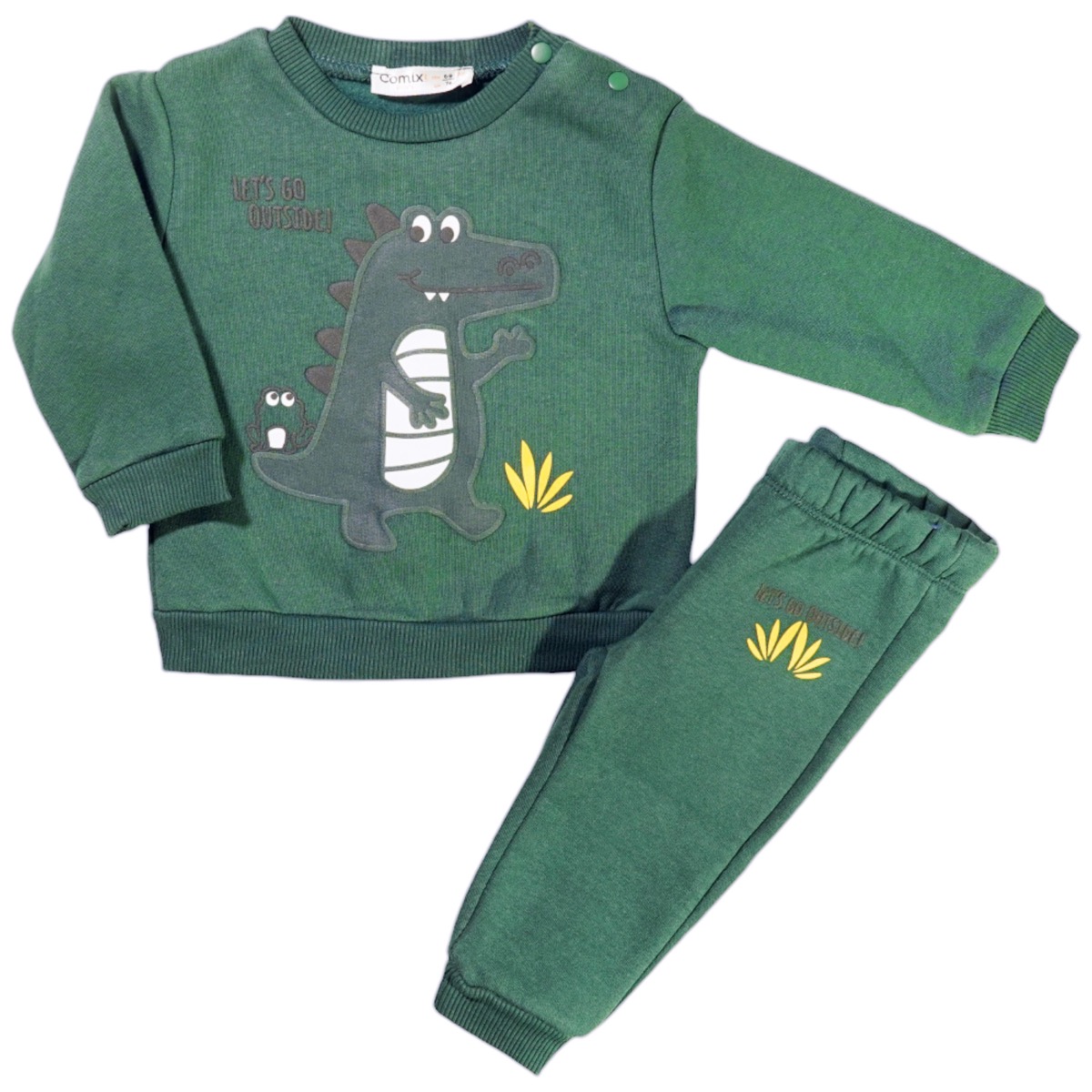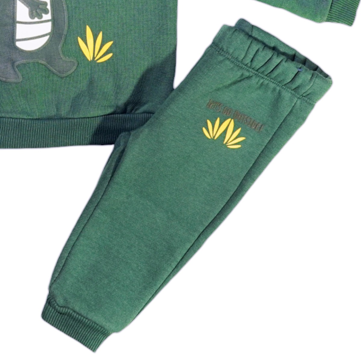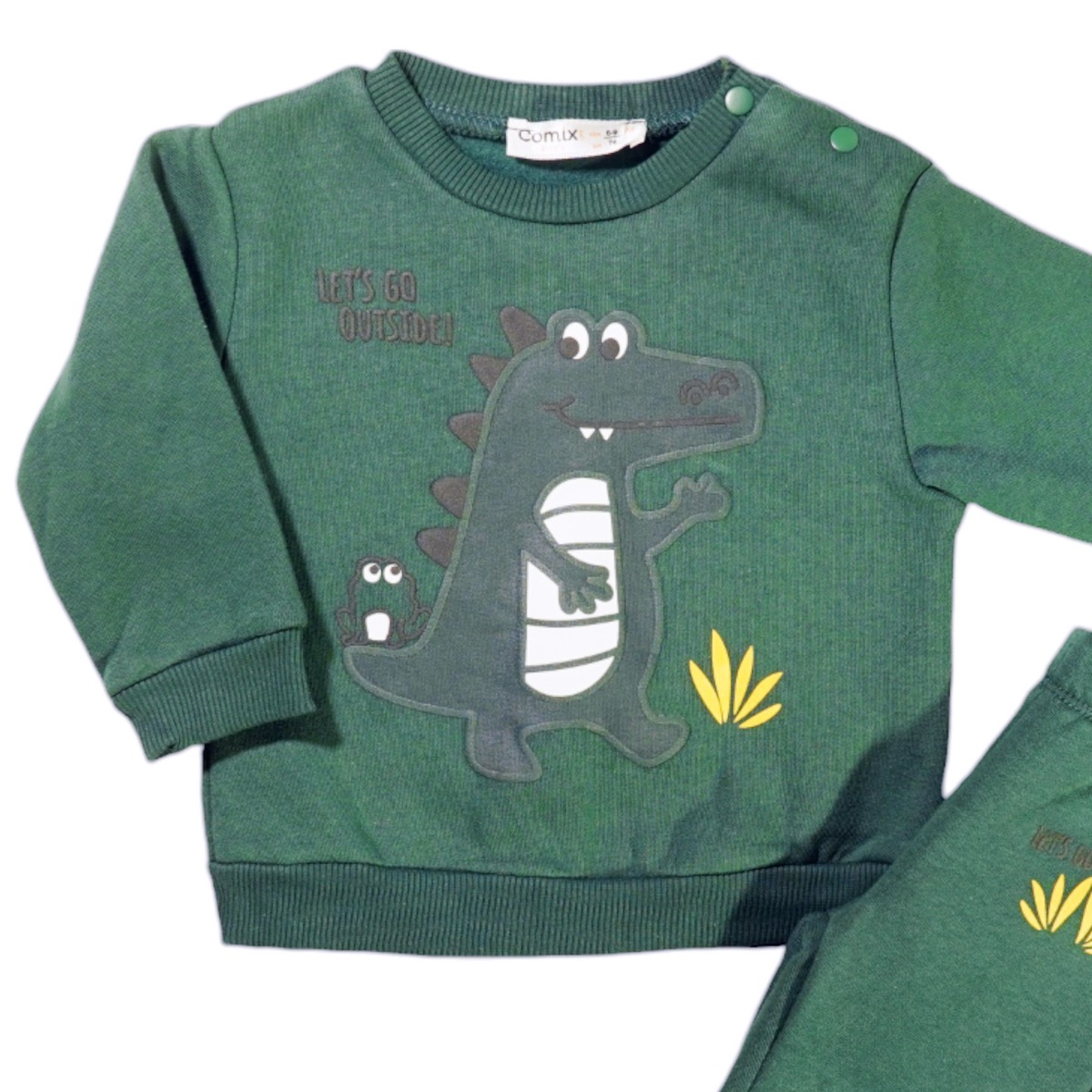 Εξερευνήστε το βρεφικό σετ φόρμας από την Comix Life, σε εντυπωσιακό πράσινο χρώμα, ιδανικό για τις χειμερινές περιπέτειες του μικρού σας! Κατασκευασμένο από 90% βαμβάκι και 10% ελαστάνη, αυτό το σετ προσφέρει μαλακή αίσθηση και άνετες κινήσεις. Η μπλούζα διαθέτει ανάγλυφο σχέδιο στο εμπρός μέρος που την ξεχωρίζει, ενώ το πρακτικό άνοιγμα με τρουκς στον ώμο διευκολύνει το ντύσιμο. Το λάστιχο με ριμπ ύφανση στο λαιμό, τα μανίκια και στο κάτω μέρος εξασφαλίζει τέλεια εφαρμογή, κρατώντας τον ζεστό. Το παντελόνι διαθέτει επίσης λάστιχο στη μέση και στο τελείωμα, προσφέροντας ελευθερία κινήσεων για ατελείωτες στιγμές παιχνιδιού. Ιδανικό για καθημερινή χρήση, αυτό το σετ φόρμας είναι η τέλεια επιλογή για μικρούς εξερευνητές που αγαπούν την άνεση και το στυλ!