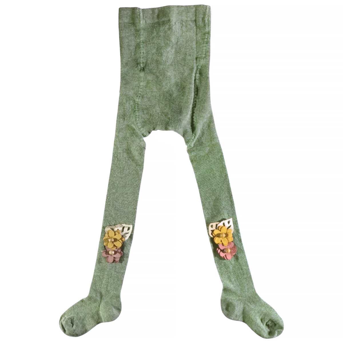 Defne Baby χοντρό καλσόν «Green Flowers»