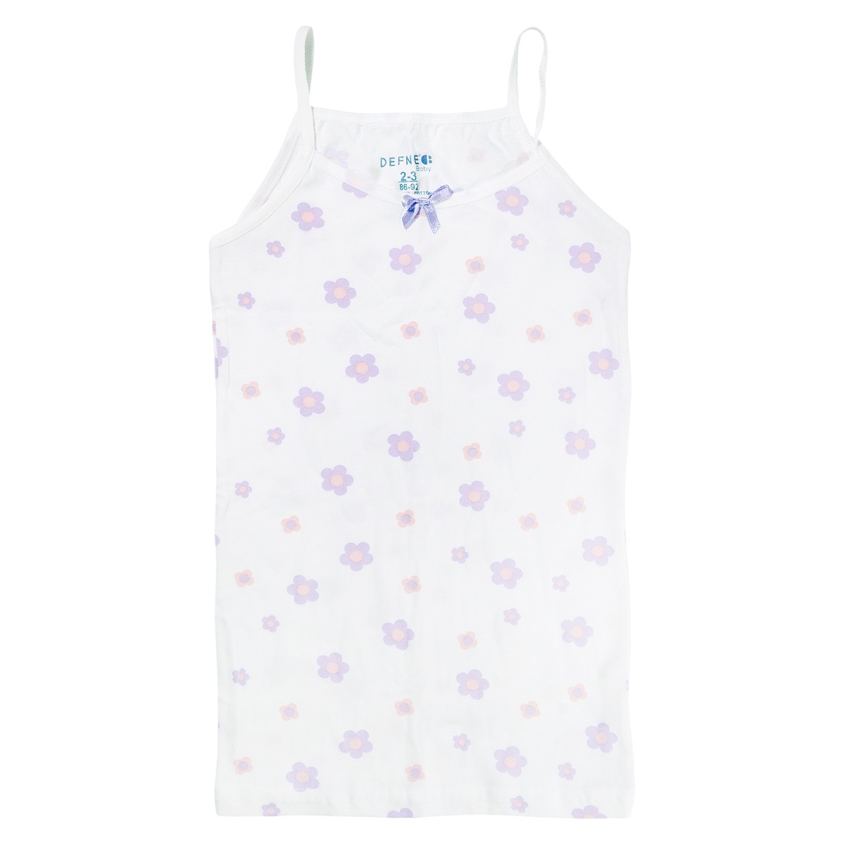 Το λευκό φανελάκι από τη Defne Baby έχει γλυκό, κοριτσίστικο χαρακτήρα και ταιριάζει όμορφα στα κοριτσάκια σας όλο τον χρόνο. Είναι αμάνικο, με στάμπα all over από μικρά λουλουδάκια που δίνουν μια ρομαντική, απαλή νότα στο ντύσιμο, είτε φορεθεί μόνο του είτε κάτω από άλλα ρούχα. Η σύνθεση 95% βαμβάκι και 5% ελαστάνη προσφέρει απαλή αίσθηση στο δέρμα και ελαστικότητα, ώστε να αγκαλιάζει άνετα τον κορμό χωρίς να τα στενεύει. Μπορεί να χρησιμοποιηθεί ως φανελάκι κάτω από μπλούζες και φορεματάκια τις πιο δροσερές μέρες ή σαν λεπτή μπλουζίτσα με κολάν και σορτσάκια όταν ο καιρός ζεσταίνει. Μια πρακτική και τρυφερή επιλογή για την καθημερινή τους γκαρνταρόμπα.