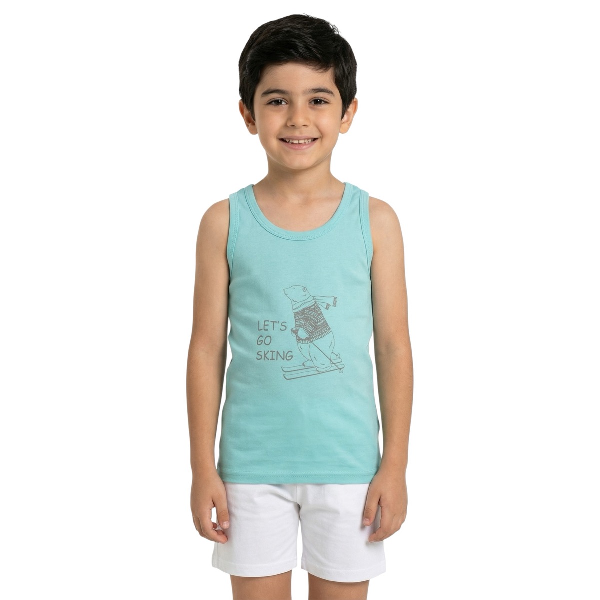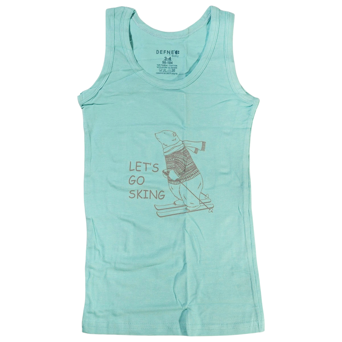Το γαλάζιο φανελάκι από τη Defne Baby είναι ένα δροσερό, καθημερινό κομμάτι για τα αγοράκια σας. Είναι αμάνικο, με στάμπα στο εμπρός μέρος που χαρίζει πιο παιδική και χαρούμενη όψη, ώστε να φοριέται ευχάριστα τόσο ως εσώρουχο όσο και σαν λεπτή μπλουζίτσα τις πιο ζεστές μέρες. Η σύνθεση 95% βαμβάκι και 5% ελαστάνη προσφέρει απαλή αίσθηση στο δέρμα και ελαστικότητα, για άνετη εφαρμογή χωρίς να πιέζει τον κορμό ή να περιορίζει την κίνηση στο παιχνίδι. Μπορεί να συνδυαστεί με φόρμα, σορτσάκι ή πιτζαμάκι, αλλά και να φορεθεί κάτω από μπλούζες και φούτερ, καλύπτοντας πολλές στιγμές της καθημερινότητας.