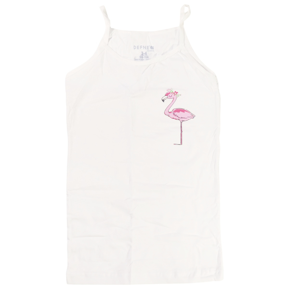 Το λευκό φανελάκι από τη Defne Baby είναι ένα ευέλικτο κομμάτι για τα κοριτσάκια σας, που μπορεί να φορεθεί από το πρωί μέχρι το βράδυ. Είναι αμάνικο, με στάμπα ένα φλαμίνγκο στο εμπρός μέρος, δίνοντας μια χαρούμενη, κοριτσίστικη πινελιά ακόμη και στο πιο απλό ντύσιμο. Η σύνθεση 95% βαμβάκι και 5% ελαστάνη προσφέρει απαλή αίσθηση πάνω στο δέρμα και ελαστικότητα, ώστε να εφαρμόζει άνετα στον κορμό χωρίς να τα στενεύει. Μπορεί να χρησιμοποιηθεί ως φανελάκι κάτω από μπλούζες και φορέματα τις πιο κρύες μέρες ή σαν ελαφριά μπλουζίτσα με κολάν, σορτσάκι ή πιτζαμάκι όταν ο καιρός είναι πιο γλυκός. Μια πρακτική επιλογή για την καθημερινή ντουλάπα των μικρών σας.