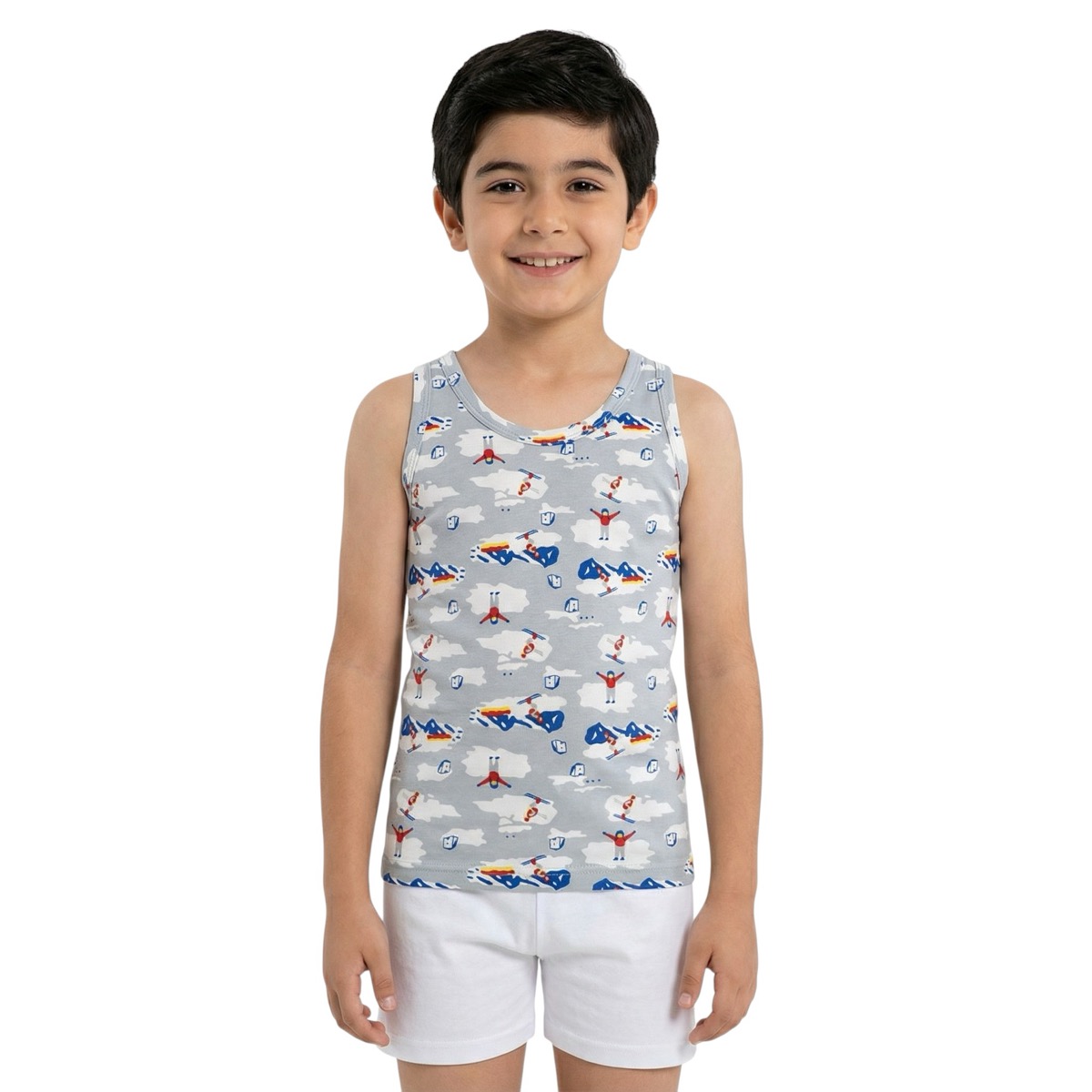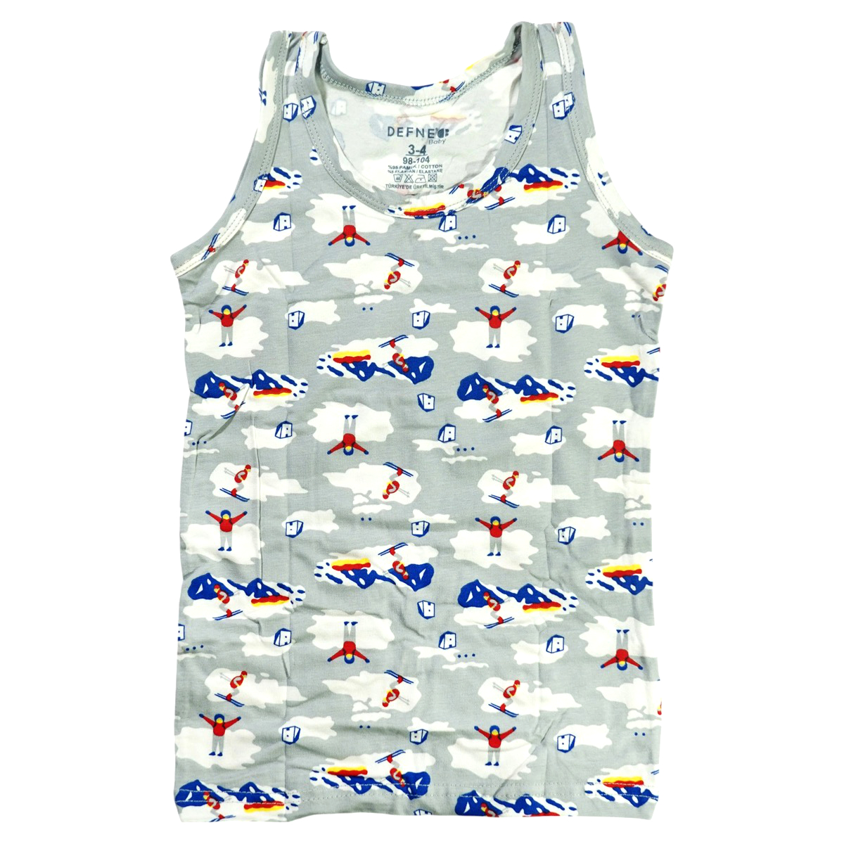 Το γκρι φανελάκι από τη Defne Baby είναι μια άνετη επιλογή για τα αγοράκια σας, που μπορεί να φορεθεί πολλές ώρες μέσα στη μέρα. Είναι αμάνικο, με στάμπα all over, δίνοντας πιο παιχνιδιάρικη όψη σε ένα κατά τα άλλα βασικό κομμάτι της ντουλάπας. Η σύνθεση 95% βαμβάκι και 5% ελαστάνη προσφέρει απαλή αίσθηση στο δέρμα και ελαστικότητα, ώστε να εφαρμόζει σωστά χωρίς να πιέζει τον κορμό ή να περιορίζει την κίνηση. Φοριέται εύκολα κάτω από μπλούζες και φούτερ όταν κάνει κρύο, αλλά και μόνο του με φόρμα ή σορτσάκι όταν ο καιρός είναι πιο γλυκός, εξυπηρετώντας διαφορετικές στιγμές της καθημερινότητας.
