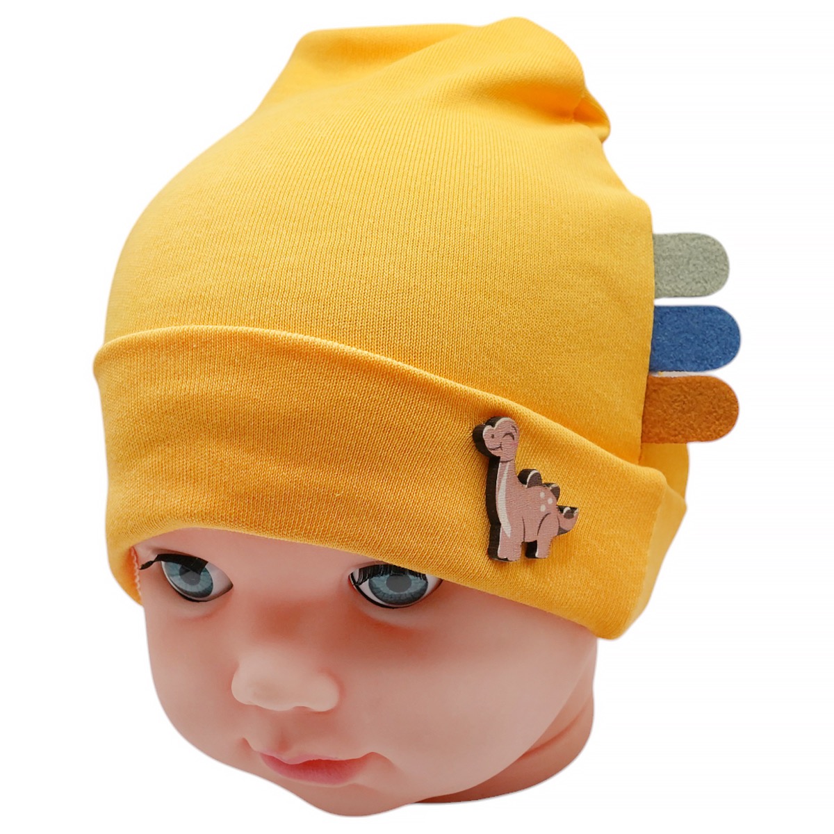Για τους μικρούς… παλαιοντολόγους από την κούνια! Το σκουφάκι νεογνού Defne σε φωτεινή κίτρινη απόχρωση φτιάχτηκε για να ξεχωρίζει. Το ριμπ ύφασμα από 100% βαμβάκι προσφέρει άνεση και ελευθερία στην κίνηση, ενώ η ξύλινη λεπτομέρεια με τον δεινόσαυρο στο μπροστινό μέρος το κάνει πραγματικά ξεχωριστό. Είναι ιδανικό για καθημερινές εμφανίσεις με στιλ, αλλά και για δώρο που τραβάει αμέσως την προσοχή. Άνετο, πρακτικό και γεμάτο παιχνιδιάρικη διάθεση!