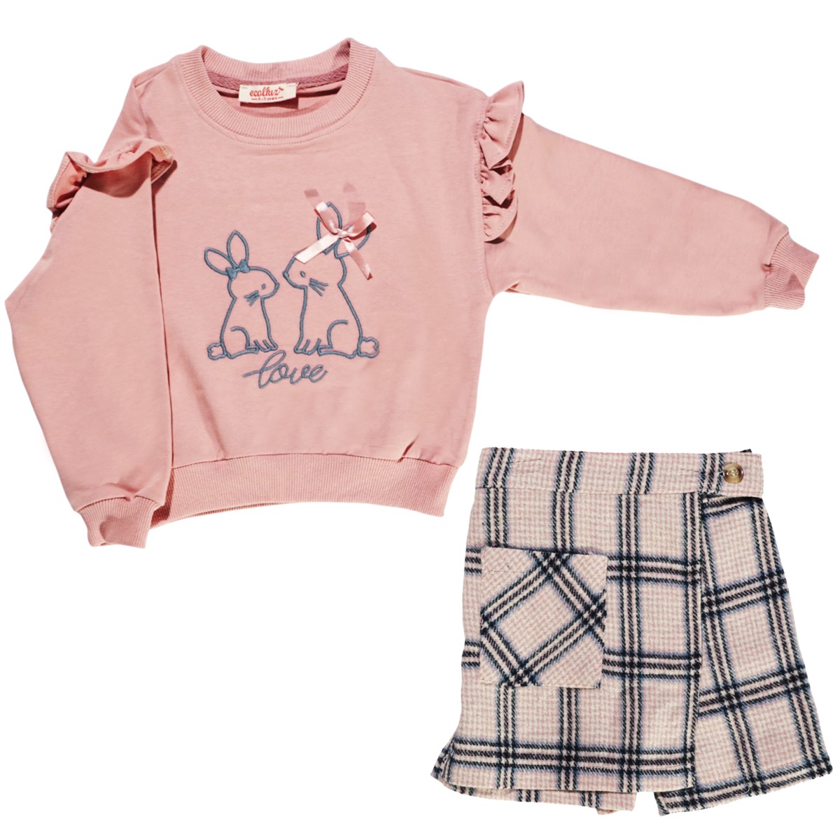 Το χειμωνιάτικο σετ της Ecolkiz σε σομόν απόχρωση είναι μια υπέροχη επιλογή για την καθημερινότητα της κόρης σας. Η μπλούζα από λεπτό βαμβακερό ύφασμα διαθέτει απλικέ σχέδιο εμπρός που προσθέτει μια παιχνιδιάρικη νότα, ενώ τα λάστιχα στο λαιμό, στα μανίκια και περιμετρικά στο τελείωμα εξασφαλίζουν άψογη εφαρμογή. Το κομψό σορτσάκι-φούστα από ύφασμα τύπου φανέλα συνδυάζεται τέλεια με την μπλούζα και διαθέτει πρακτική τσέπη μπροστά και λάστιχο πίσω για καλύτερη προσαρμογή. Το σκόρτς είναι κατασκευασμένο από 100% βαμβάκι, ενώ η μπλούζα από 70% βαμβάκι, 29% πολυεστέρα και 1% λύκρα, προσφέροντας άνεση και ελαστικότητα για όλες τις δραστηριότητες.
