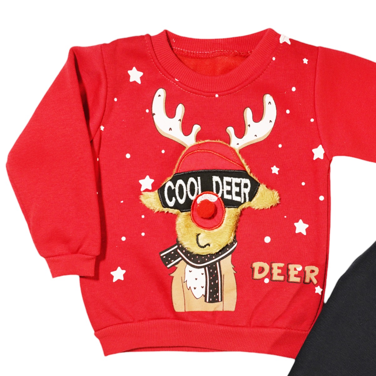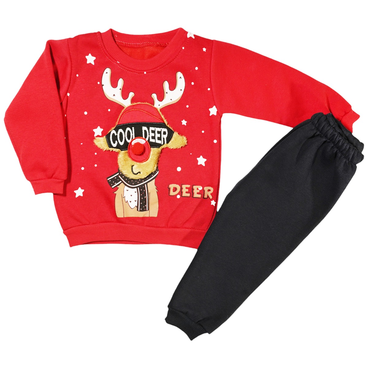 Γιορτάστε με το χριστουγεννιάτικο σετ φόρμας με χνούδι της μάρκας Eymus, ιδανικό για αγοράκια που αγαπούν τη μόδα και την άνεση! Το σετ περιλαμβάνει μπλούζα από φούτερ ύφασμα, διακοσμημένη με εντυπωσιακό τύπωμα και μεγάλο απλικέ σχέδιο στο εμπρός μέρος, που ενισχύει τη γιορτινή ατμόσφαιρα. Το λάστιχο στο λαιμό, στα μανίκια και περιμετρικά στο τελείωμα προσφέρει άνετη εφαρμογή, ενώ το παντελόνι από φούτερ ύφασμα διαθέτει λάστιχο περιμετρικά στη μέση και στο κάτω μέρος για επιπλέον άνεση. Με έντονο κόκκινο χρώμα, αυτό το σετ είναι τέλειο για τις γιορτές και τις οικογενειακές συγκεντρώσεις. Κατασκευασμένο από 100% βαμβάκι, εξασφαλίζει μαλακή και ευχάριστη αίσθηση στο δέρμα. Ιδανικό δώρο για μικρούς φίλους, αυτό το σετ θα τους κάνει να ξεχωρίζουν!