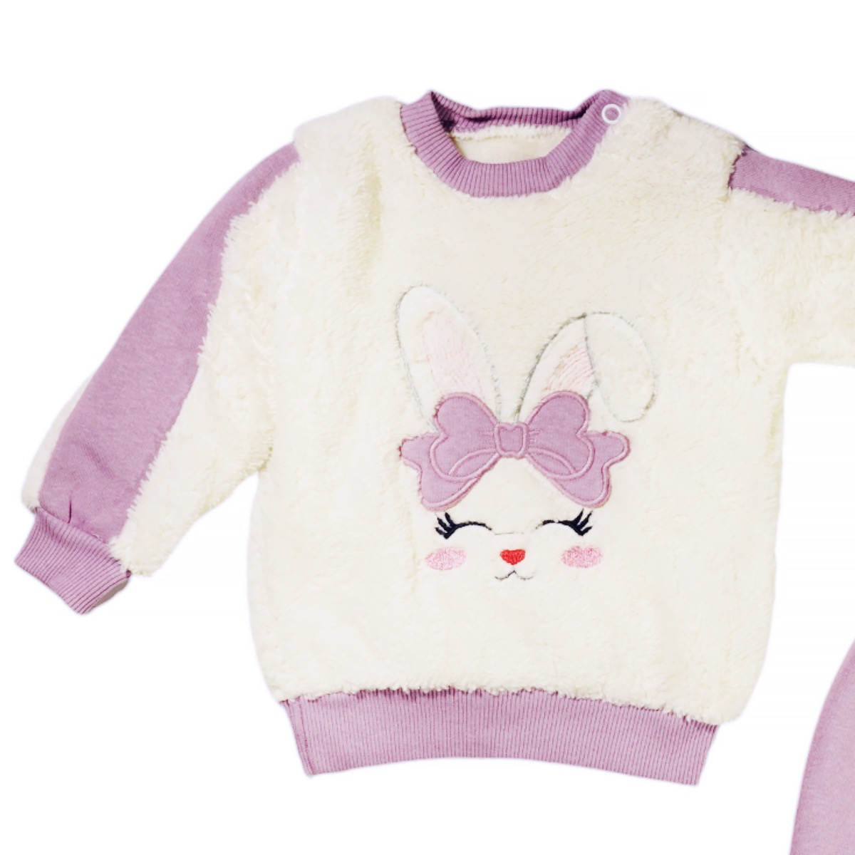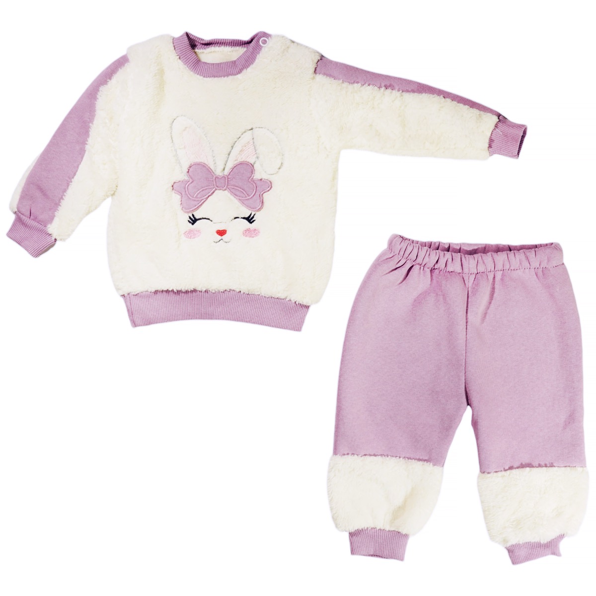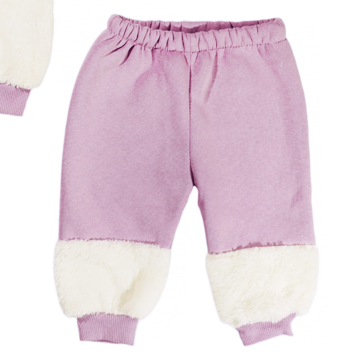 Επιλέξτε το λατρεμένο βρεφικό σετ φόρμας από τη Gules Baby, ιδανικό για τις χειμερινές περιπέτειες της μικρής σας! Το σετ περιλαμβάνει μία εκρού μπλούζα και ένα φανταστικό μοβ παντελόνι, κατασκευασμένα από 100% βαμβάκι που προσφέρει άνεση και απαλότητα. Η μπλούζα έχει ένα όμορφο απλικέ σχέδιο στο μπροστινό μέρος και διαθέτει πρακτικό άνοιγμα με τρουκς στον ώμο για εύκολο ντύσιμο. Το λάστιχο με ριμπ ύφανση στο λαιμό και στα μανίκια προσφέρει καλή εφαρμογή ώστε να διατηρεί τη ζεστασιά. Το παντελόνι, φτιαγμένο από φούτερ με fleece λεπτομέρειες και χνούδι στο εσωτερικό, εξασφαλίζει μέγιστη άνεση κατά την κίνηση, ενώ το λάστιχο στη μέση και στο τελείωμα καθιστά τις κινήσεις ελεύθερες και παιχνιδιάρικες. Ιδανικό για κάθε μέρα, αυτό το σετ είναι η τέλεια επιλογή για μια στιλάτη και ζεστή εμφάνιση!