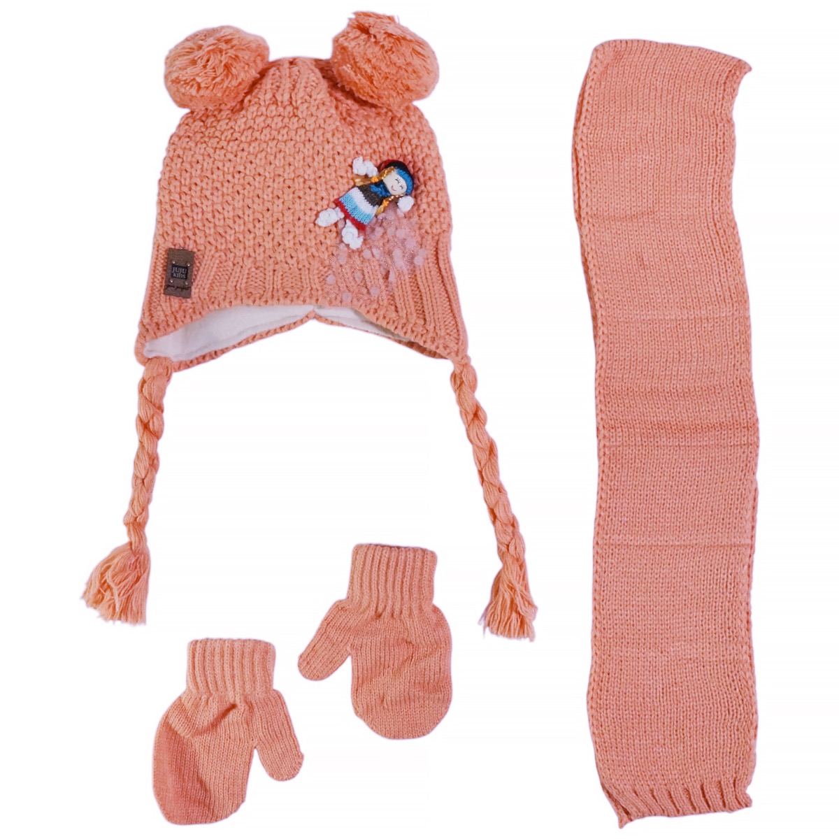 Για τις μικρές σας που αγαπούν τα φωτεινά χρώματα, το πλεκτό σετ της Juju σε ένα ζεστό κοραλλί χρώμα είναι η τέλεια επιλογή για τον χειμώνα. Φτιαγμένο από 100% ακρυλικό, το μαλακό και χοντρό νήμα προσφέρει μια αίσθηση θαλπωρής, ενώ το σκουφάκι με το χαριτωμένο απλικέ σχέδιο και τις δύο παιχνιδιάρικες φουντίτσες θα κλέψει τις εντυπώσεις. Η εσωτερική επένδυση από fleece εξασφαλίζει ότι το κεφαλάκι των κοριτσιών σας θα παραμείνει ζεστό και προστατευμένο από το κρύο. Το κασκόλ και τα γάντια, από το ίδιο νήμα, συμπληρώνουν αυτό το υπέροχο σύνολο, προσφέροντας στις μικρές σας άνεση και ένα μοναδικό στιλ για τις χειμερινές τους περιπέτειες.