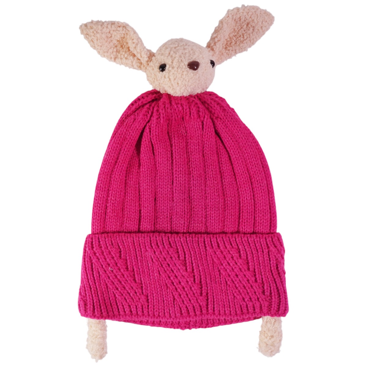 Kitti πλεκτό σετ σκούφος και κασκόλ «Fuchsia Big Bunny»