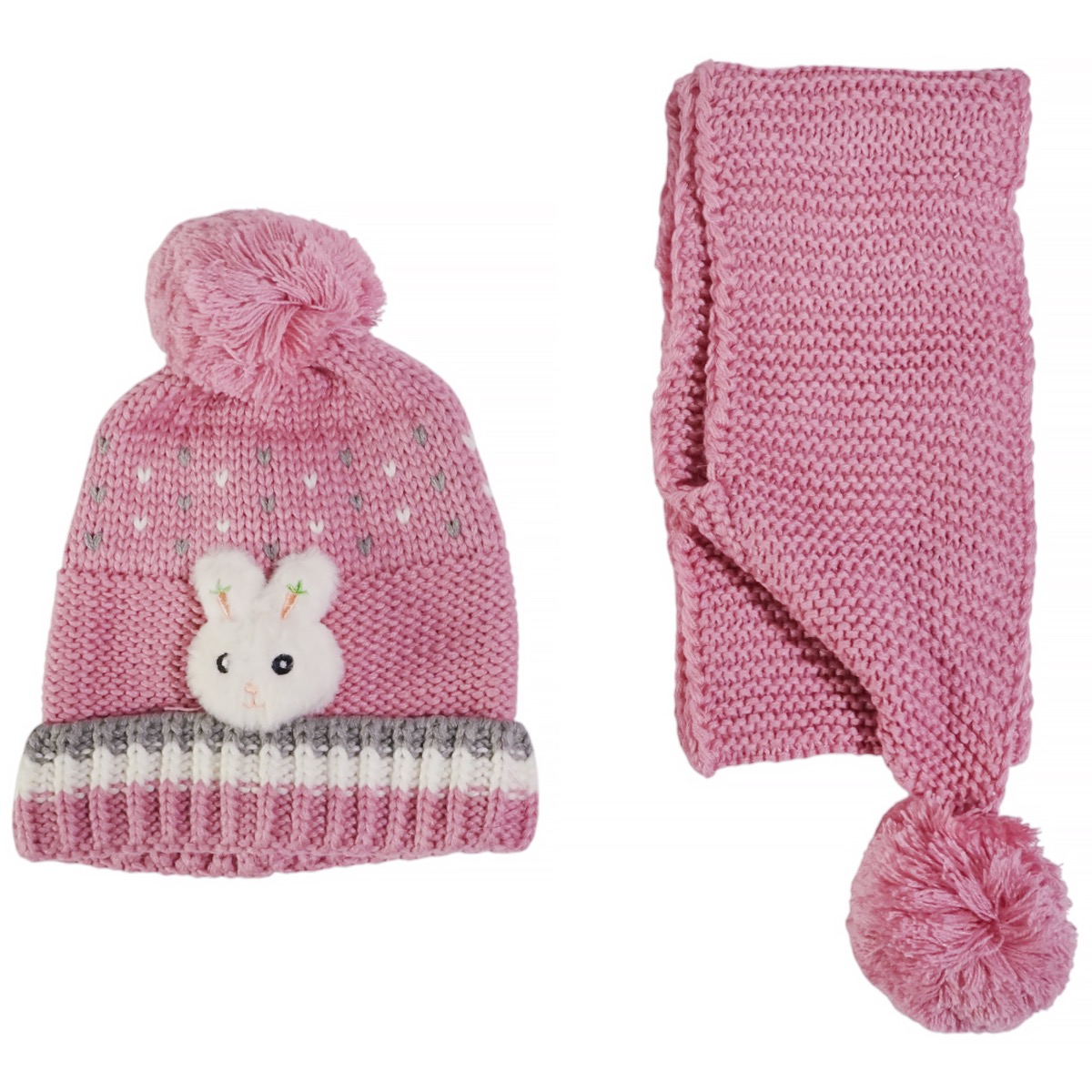 Kitti πλεκτό σετ σκούφος και κασκόλ «Fuchsia Carrot Rabbit»