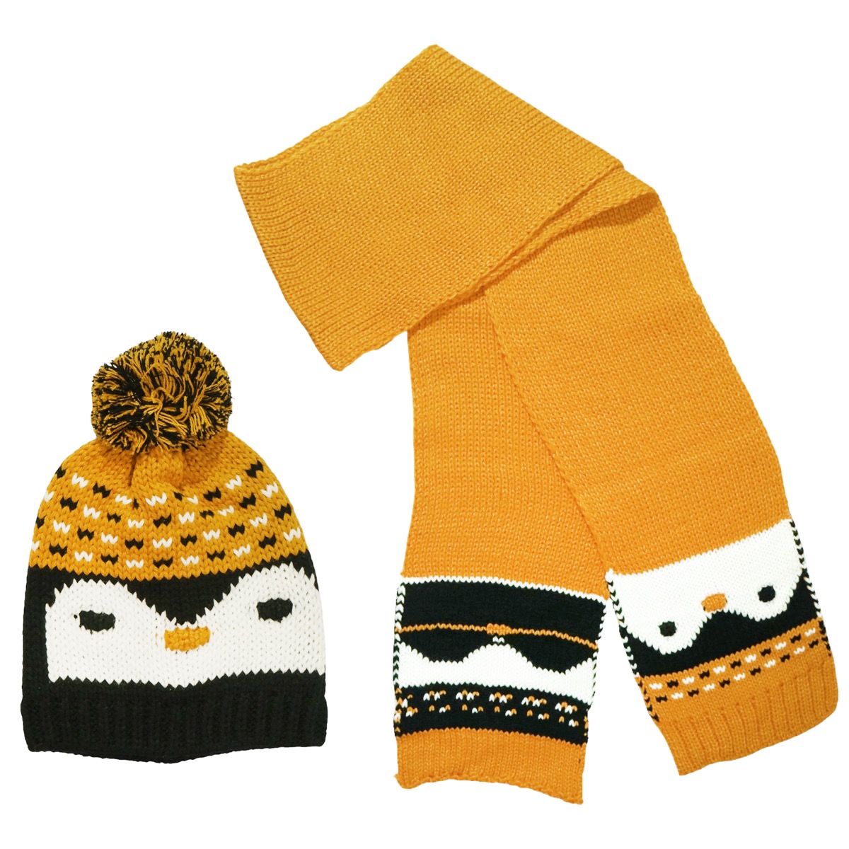 Η Kitti φέρνει τον χειμώνα πιο κοντά στα παιδιά με ένα πλεκτό σετ σε μουσταρδί και μαύρο, που ξεχωρίζει για το παιχνιδιάρικο σχέδιο πιγκουίνου μέσα στην πλέξη. Το σκουφάκι με τη μεγάλη φούντα στο επάνω μέρος προσφέρει ζεστασιά και στιλ, ενώ το ασορτί κασκόλ ολοκληρώνει το σύνολο με τον ίδιο χαρούμενο χαρακτήρα. Η σύνθεση από 100% ακρυλικό εξασφαλίζει απαλή υφή και άνεση, ιδανική για καθημερινή χρήση στις χειμερινές βόλτες και το σχολείο. Μια επιλογή που συνδυάζει φαντασία και πρακτικότητα, χαρίζοντας στα αγόρια μοναδική εμφάνιση και προστασία από το κρύο.