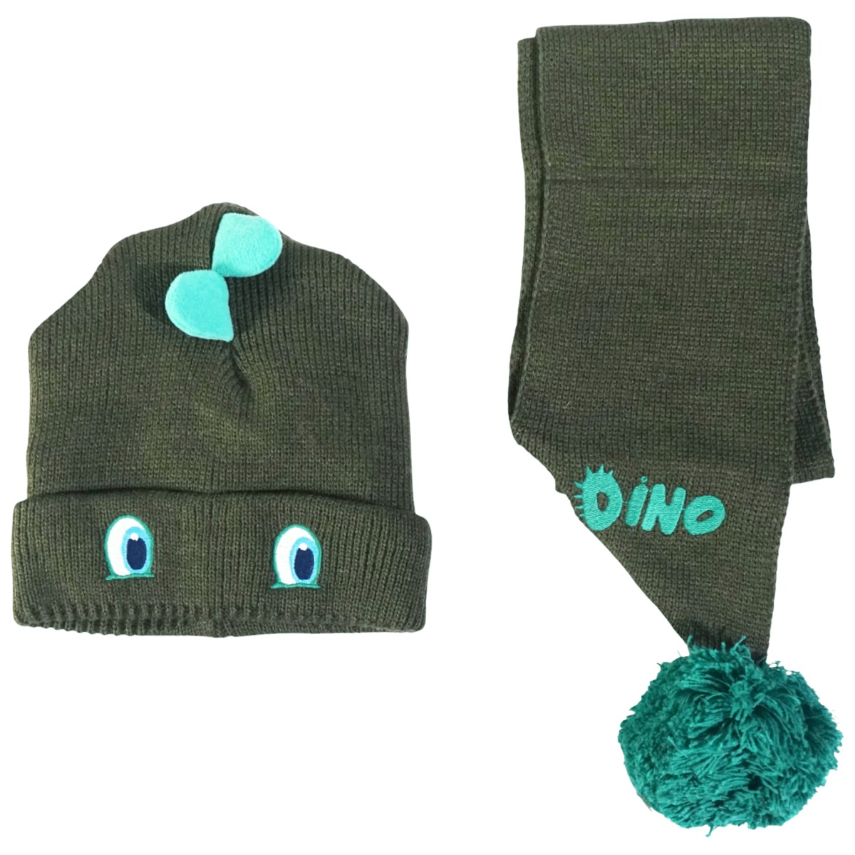 Kitti πλεκτό σετ σκούφος και κασκόλ «Oil Dino»