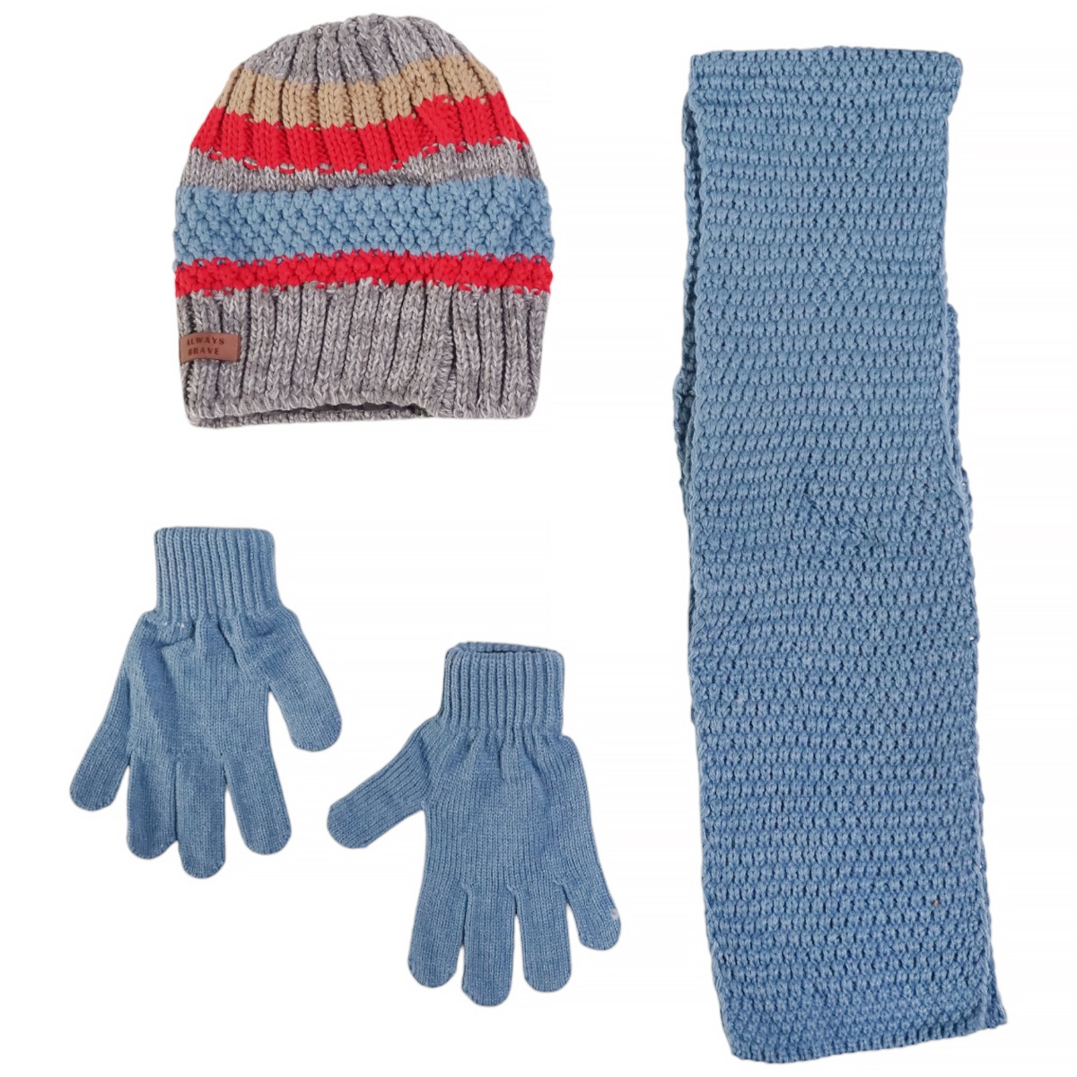 Το πλεκτό σετ από τη Kitti φέρνει μια πιο χαρούμενη νότα στο χειμερινό ντύσιμο, με πολύχρωμο σκουφάκι σε τόνους γαλάζιου και κόκκινου που ξεχωρίζει χωρίς να είναι υπερβολικό. Το σκουφάκι κρατά ζεστό το κεφαλάκι και δένει όμορφα με το γαλάζιο κασκόλ και τα γαντάκια, δημιουργώντας ένα ολοκληρωμένο σύνολο που προστατεύει λαιμό και χέρια τις κρύες μέρες. Η σύνθεση από 100% ακρυλικό προσφέρει απαλή αίσθηση και σταθερή ζεστασιά, ιδανική για τον χειμώνα. Ένα σετ που θα φορέσουν εύκολα τα αγόρια σας σε σχολείο, βόλτες και παιχνίδι, προσφέροντας πρακτικότητα και προσεγμένη εμφάνιση.
