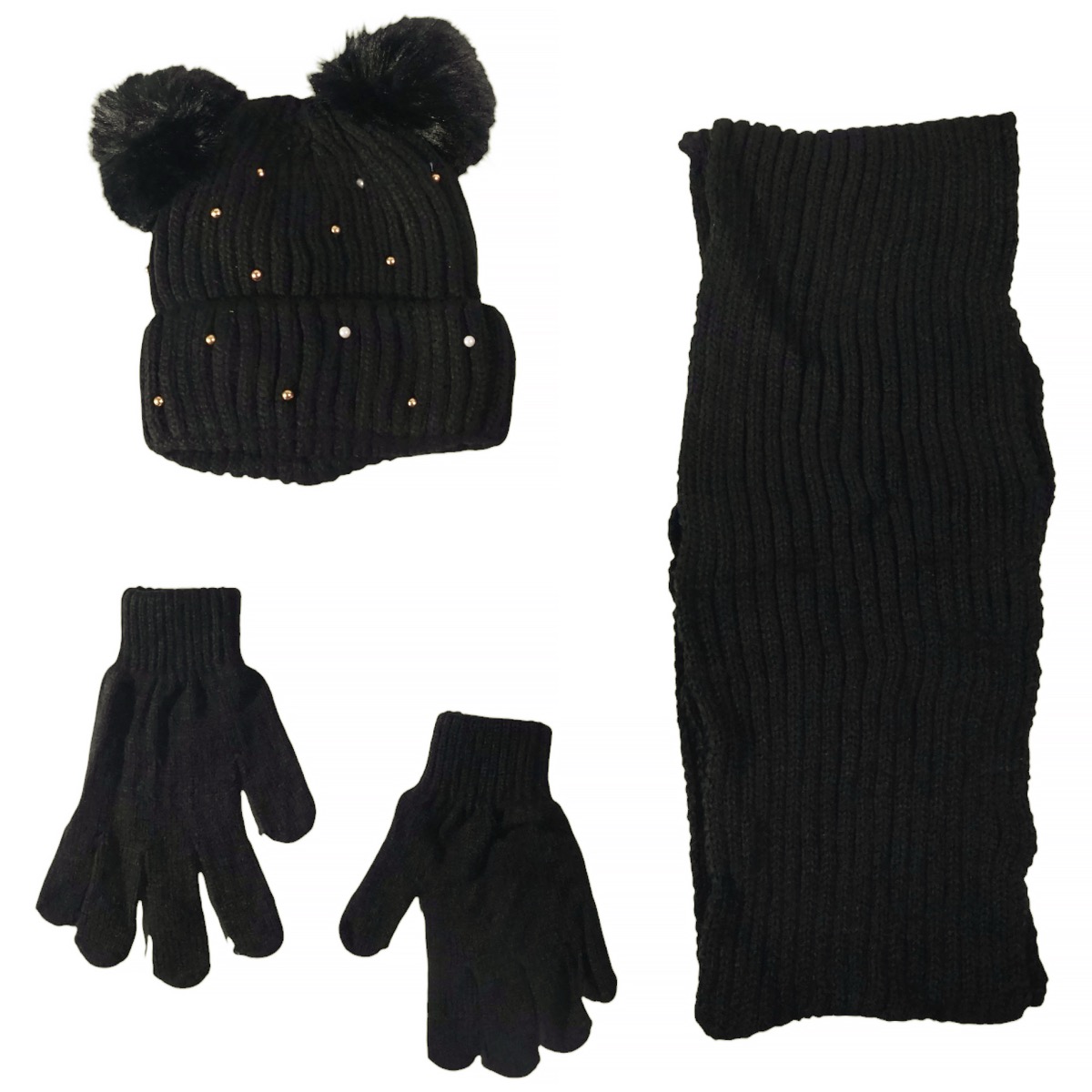 Kitti πλεκτό σετ σκούφος-κασκόλ-γάντια «Black Pearls»