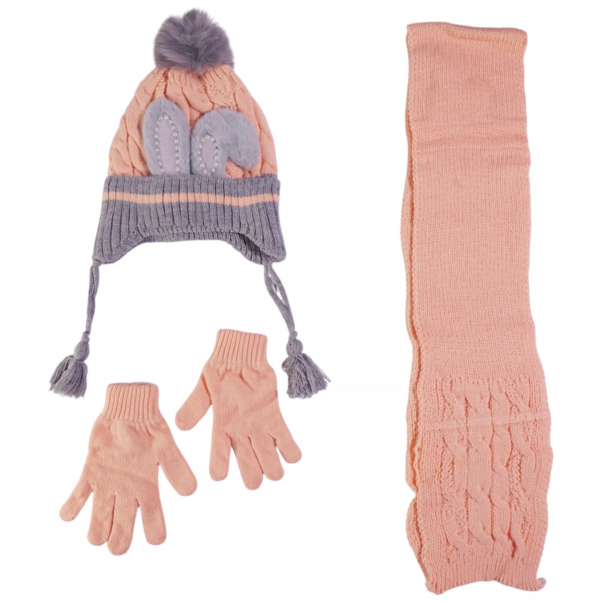 Το πλεκτό σετ σκούφος–κασκόλ–γάντια Kitti σε κοραλλί απόχρωση είναι η ιδανική επιλογή για κάθε μικρή κυρία τον χειμώνα. Ο σκούφος διαθέτει απλικέ γούνινο σχέδιο με διακριτικές πέρλες και εντυπωσιακή φούντα στο επάνω μέρος, ενώ τα πλαϊνά κορδόνια προσφέρουν άνετη εφαρμογή και προστασία από το κρύο. Το ασορτί κασκόλ και τα γάντια συμπληρώνουν τέλεια το στιλ, προσφέροντας ολοκληρωμένη ζεστασιά και κομψότητα στις χειμερινές εξορμήσεις. Κατασκευασμένο από 100% ακρυλικό, είναι απαλό, ανθεκτικό και εύκολο στη φροντίδα. Ένα πρακτικό και στιλάτο σετ που συνδυάζει άνεση, μόδα και προστασία από το κρύο. Ιδανικό για κοριτσάκια που αγαπούν τη λάμψη.