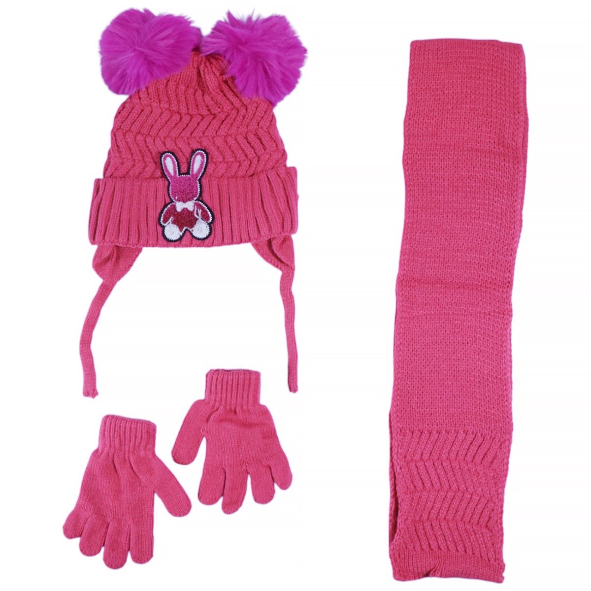 Kitti πλεκτό σετ σκούφος-κασκόλ-γάντια «Fuchsia Little Rabbit»