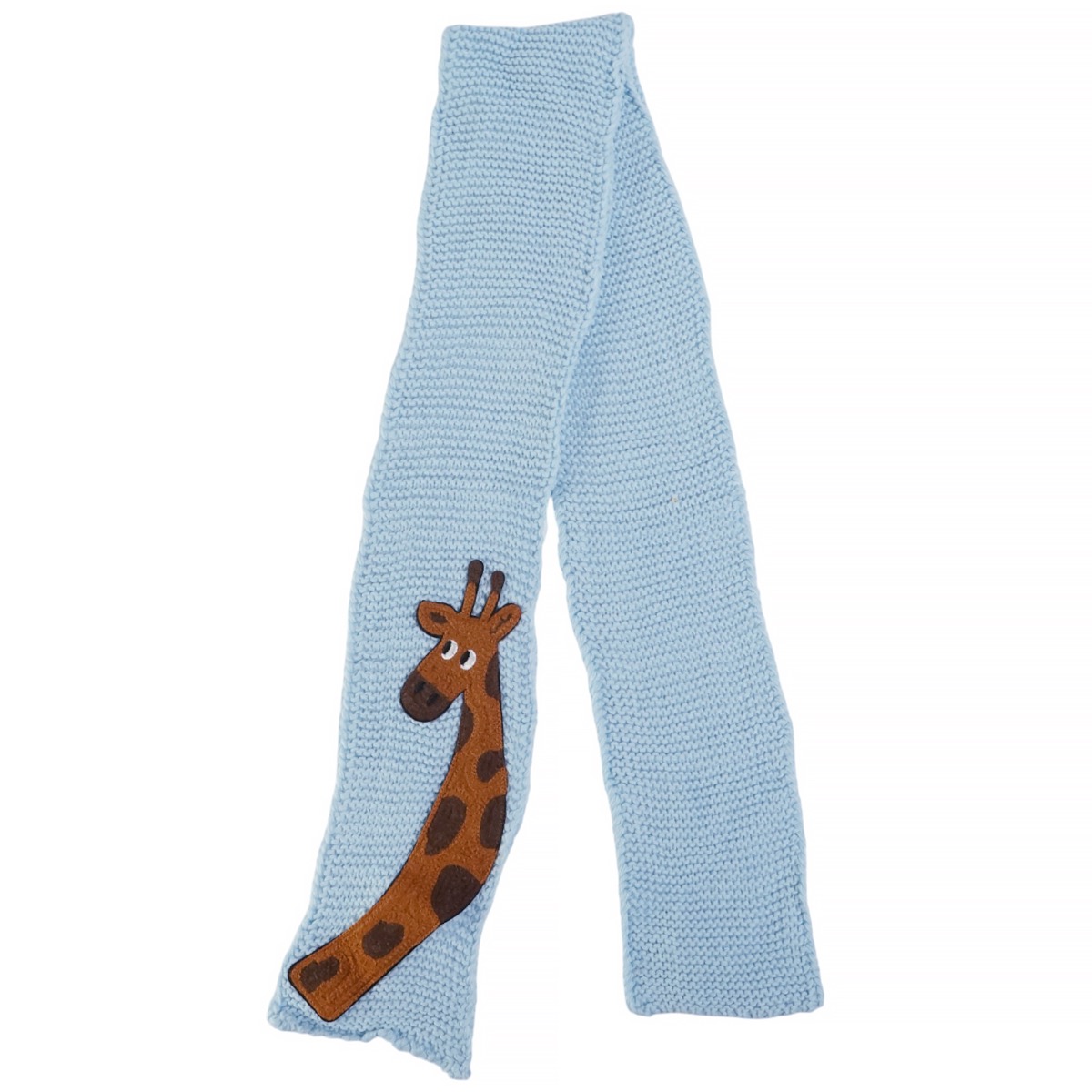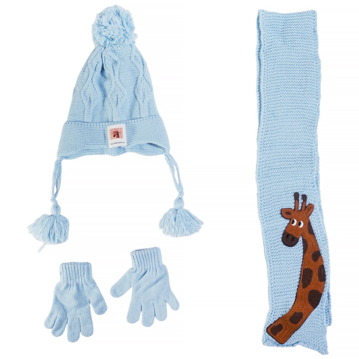 Kitti πλεκτό σετ σκούφος-κασκόλ-γάντια «Light Blue Giraffe»