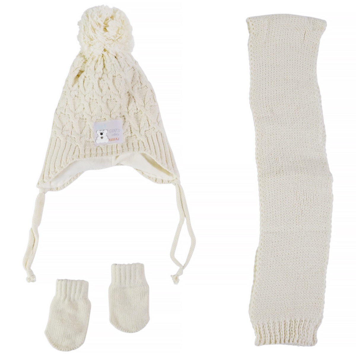 Το μπεζ πλεκτό σετ από τη Kitti είναι μια ζεστή λύση για τις κρύες μέρες, ειδικά όταν τα αγόρια σας θέλουν να παίζουν έξω χωρίς να κρυώνουν. Το σκουφάκι έχει μεγάλη φούντα στο επάνω μέρος και κορδόνια στα πλαϊνά, ώστε να δένει και να μένει σταθερό, προστατεύοντας καλά το κεφάλι. Το κασκόλ και τα γαντάκια σε ασορτί απόχρωση ολοκληρώνουν το σύνολο και καλύπτουν λαιμό και χέρια, προσφέροντας επιπλέον ζεστασιά. Η σύνθεση από 100% ακρυλικό χαρίζει απαλή υφή και άνετη αίσθηση. Ένα πρακτικό σετ για τον χειμώνα, ιδανικό για σχολείο, βόλτες και απογευματινό παιχνίδι.