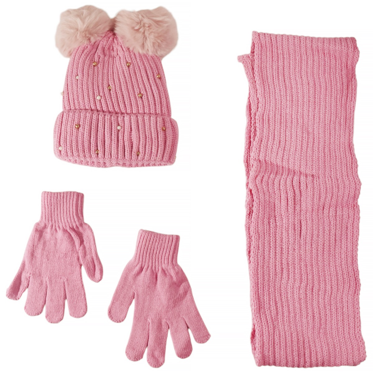 Για τις μικρές σας που αγαπούν τη λάμψη και τη ζεστασιά, το πλεκτό σετ της Kitti σε ένα ροζ χρώμα είναι η τέλεια επιλογή για τις κρύες ημέρες του χειμώνα. Φτιαγμένο από 100% ακρυλικό, το μαλακό και χοντρό νήμα προσφέρει μια αίσθηση θαλπωρής, ενώ το σκουφάκι με τις διακριτικές πέρλες και τις δύο παιχνιδιάρικες φουντίτσες θα κλέψει τις εντυπώσεις. Η εσωτερική επένδυση από fleece εξασφαλίζει ότι το κεφαλάκι των κοριτσιών σας θα παραμείνει ζεστό και προστατευμένο από το κρύο. Το κασκόλ και τα γάντια, από το ίδιο νήμα, συμπληρώνουν αυτό το υπέροχο σύνολο, προσφέροντας στις μικρές σας άνεση και ένα μοναδικό στιλ για τις χειμερινές τους περιπέτειες.