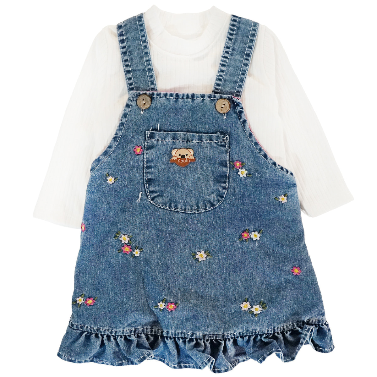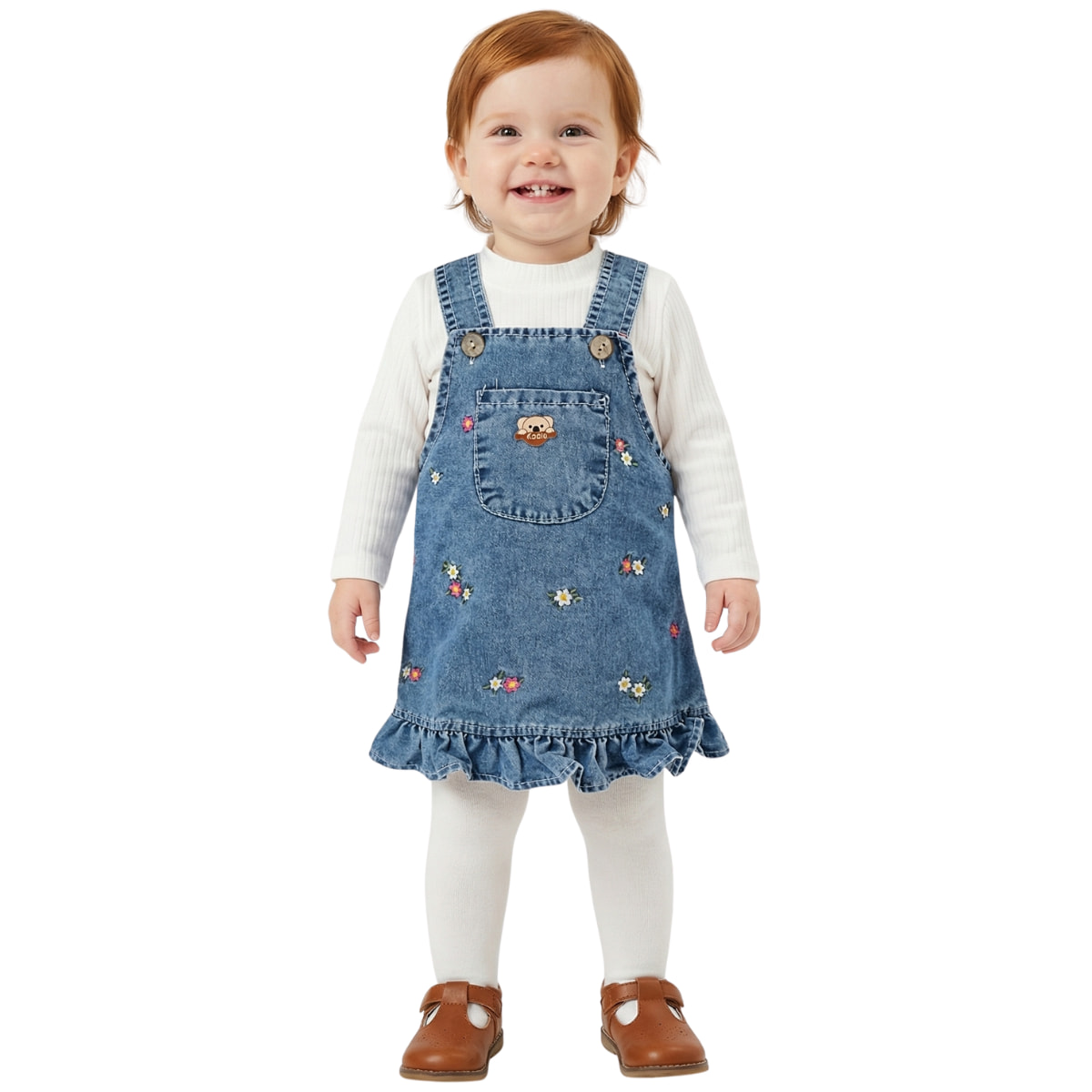 Το βρεφικό σετ από την Koala είναι μια εξαιρετικά γλυκιά και κομψή επιλογή για να ντύσετε τα κοριτσάκια σας με άνεση την άνοιξη και το φθινόπωρο. Η λευκή μονόχρωμη μπλούζα χαρίζει φρεσκάδα και συνδυάζεται αρμονικά με το υπέροχο τζιν φόρεμα σε κλασική μπλε απόχρωση. Οι τιράντες με τα κουμπιά εξασφαλίζουν εύκολη εφαρμογή, ενώ τα πανέμορφα απλικέ κεντημένα λουλουδάκια στο μπροστινό μέρος προσθέτουν μια ρομαντική και παιχνιδιάρικη πινελιά. Κατασκευασμένο εξ ολοκλήρου από 100% βαμβάκι, το σετ προσφέρει φυσική απαλότητα και φροντίδα στο ευαίσθητο βρεφικό δέρμα, κάνοντας κάθε στιγμή του παιχνιδιού ή της βόλτας ξεχωριστή.
