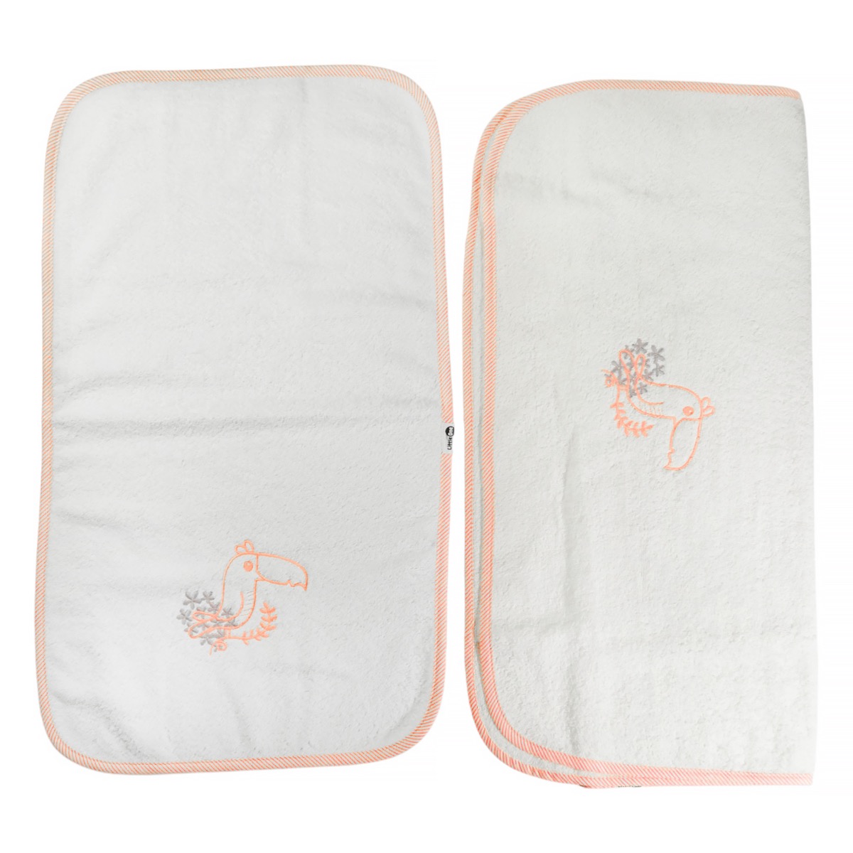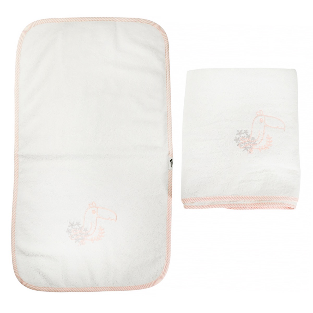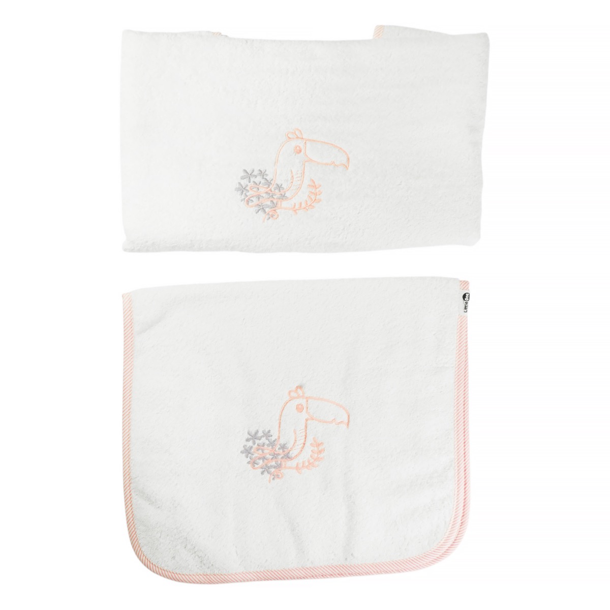 Το σετ πετσέτες δύο τεμαχίων από τη Little One σε λευκό χρώμα είναι μια τρυφερή προσθήκη για το μπάνιο από τα κοριτσάκια σας. Οι πετσέτες είναι φτιαγμένες από 100% βαμβάκι, ώστε να είναι μαλακές στο δέρμα και να στεγνώνουν καλά μετά το μπάνιο ή το καθημερινό πλύσιμο των χεριών. Το απλικέ σχέδιο με τουκάν στολίζει διακριτικά τη μία πλευρά και δίνει μια παιχνιδιάρικη νότα, που κάνει τη ρουτίνα του μπάνιου λίγο πιο ευχάριστη για τις μικρές σας. Το σετ είναι ιδανικό για χρήση στο σπίτι, για το παιδικό δωμάτιο ή ακόμη και ως δώρο.
