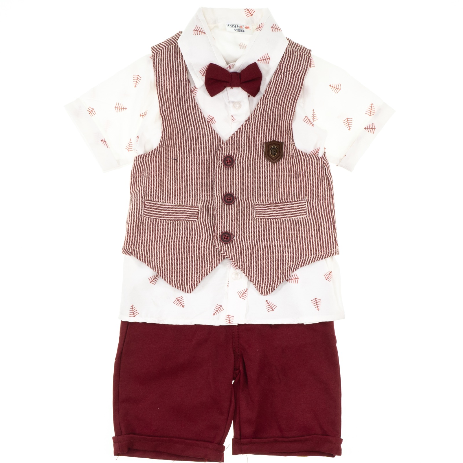 Loyax αμπιγιέ σετ γιλέκο, πουκάμισο με παπιγιόν και σορτσάκι «Bordo Cedar»