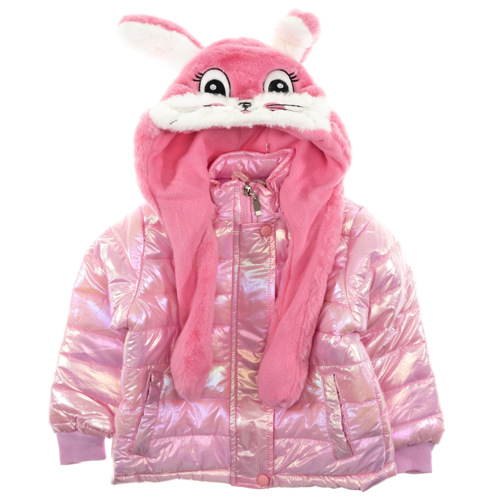 Ένα φανταστικό μπουφάν για τα κοριτσάκια μας, από αδιάβροχο ιριδίζον ύφασμα. Τσέπες και άνοιγμα με φερμουάρ και τρουκς στο εμπρός μέρος. Μια πραγματικά υπέροχη αποσπώμενη κουκούλα από συνθετικό γουνάκι. Απλικέ σχέδιο και διακοσμητικά αυτάκια που ανεβοκατεβαίνουν όταν πατάς το εσωτερικό των κορδονιών. Εσωτερική επένδυση από σατέν φόδρα. Σύνθεση από 100% πολυεστέρα.