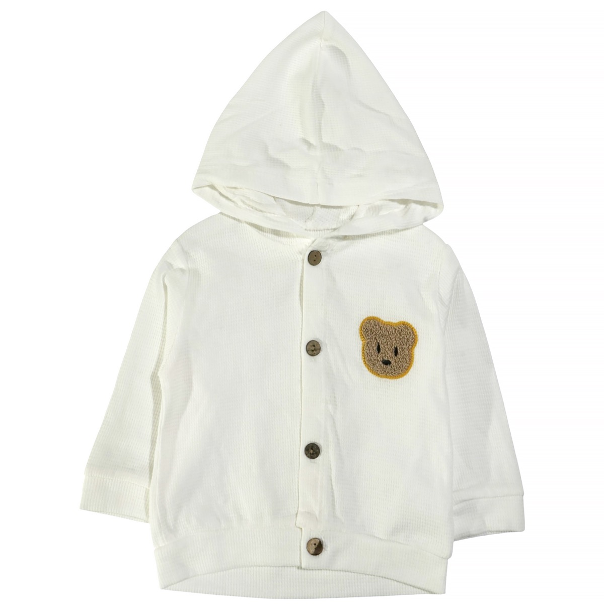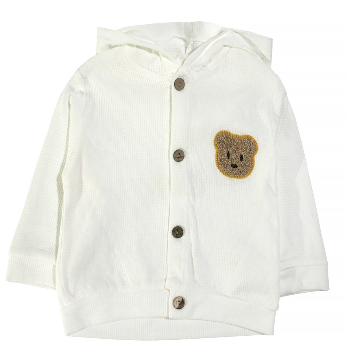 Η βρεφική ζακετούλα με κουκούλα Mancar αποτελεί την ιδανική λύση για να κρατήσετε το μωρό σας άνετo και προστατευμένο. Σε κλασική εκρού απόχρωση που ταιριάζει τόσο σε κορίτσια όσο και σε αγόρια, είναι κατασκευασμένη από λεπτό πικέ ύφασμα που την κάνει ελαφριά και ιδανική για όλη την ημέρα. Το απλικέ σχέδιο προσθέτει μια γλυκιά πινελιά, ενώ το άνοιγμα με κουμπιά στο εμπρός μέρος εξασφαλίζει εύκολο ντύσιμο και πρακτικότητα. Φτιαγμένη από 80% βαμβάκι και 20% πολυεστέρα, συνδυάζει την απαλότητα του βαμβακιού με την αντοχή του πολυεστέρα, φροντίζοντας το ευαίσθητο δέρμα του μωρού. Κατάλληλη για την άνοιξη, το φθινόπωρο και το καλοκαίρι, αυτή η ζακετούλα με κουκούλα είναι ένα απαραίτητο κομμάτι για τη βρεφική γκαρνταρόμπα.