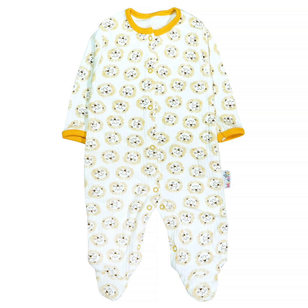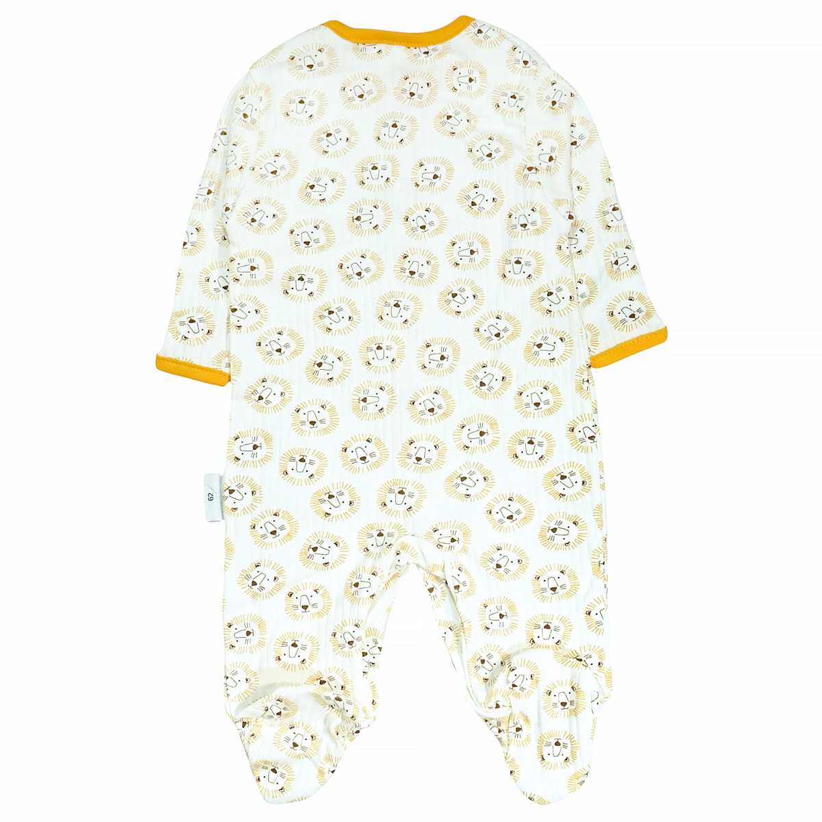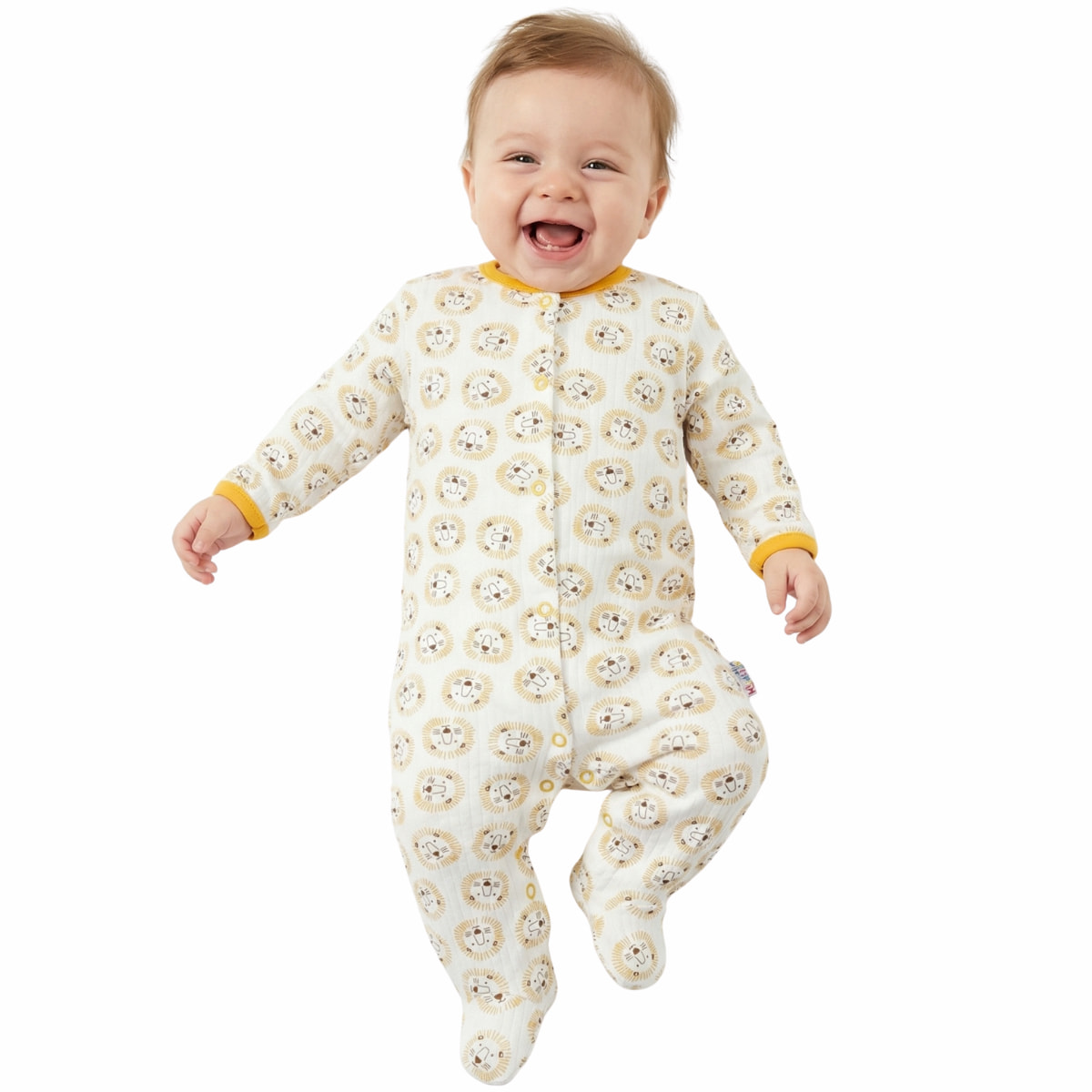 Το λεπτό φορμάκι από τη Midirik σε εκρού απόχρωση αποτελεί μια χαριτωμένη επιλογή που θα συντροφεύει τα αγοράκια σας στις ανοιξιάτικες και φθινοπωρινές τους ημέρες. Το μοτίβο με τα μικρά λιονταράκια που απλώνεται σε όλη την επιφάνεια του ρούχου χαρίζει μια παιχνιδιάρικη και τρυφερή εικόνα, κάνοντας το μωρό σας να ξεχωρίζει. Χάρη στη σύνθεση από 100% βαμβάκι, το ύφασμα σέβεται απόλυτα το ευαίσθητο δέρμα του, προσφέροντας μια φυσική και ευχάριστη αίσθηση στην αγκαλιά σας. Επιπλέον, τα τρουκς που ανοίγουν από πάνω έως κάτω είναι σχεδιασμένα για να διευκολύνουν την καθημερινότητά σας, επιτρέποντας την αλλαγή της πάνας γρήγορα και απλά, ώστε να μην διαταράσσεται η ηρεμία του παιδιού.