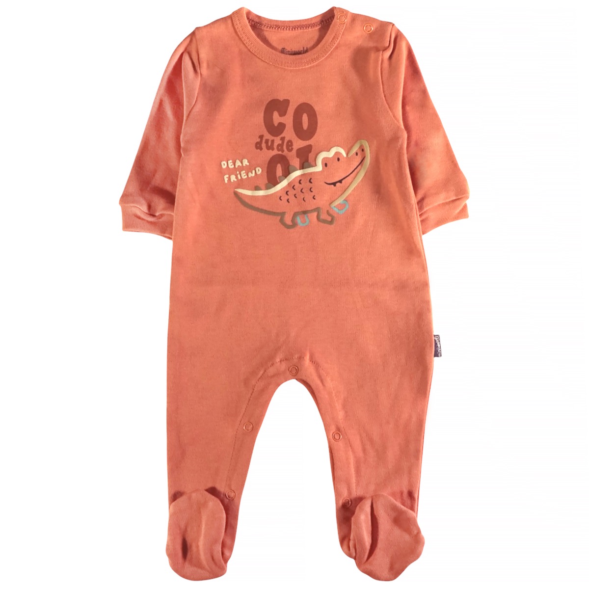 Το ολόσωμο φορμάκι της Miniworld σε ένα φωτεινό πορτοκαλί χρώμα είναι η τέλεια επιλογή για το βρεφάκι σας κατά την άνοιξη και το φθινόπωρο. Κατασκευασμένο από 100% βαμβακερό, λεπτό ύφασμα, προσφέρει απαλή αίσθηση και άνεση στο ευαίσθητο δερματάκι του μωρού σας. Το χαριτωμένο τύπωμα στο μπροστινό μέρος προσθέτει μια παιχνιδιάρικη νότα, ενώ το άνοιγμα με τρουκς στον ώμο και στο κάτω μέρος εξασφαλίζει εύκολη και γρήγορη αλλαγή πάνας. Είναι ιδανικό για τις στιγμές χαλάρωσης και παιχνιδιού του βρέφους σας, συνδυάζοντας πρακτικότητα και στιλ.