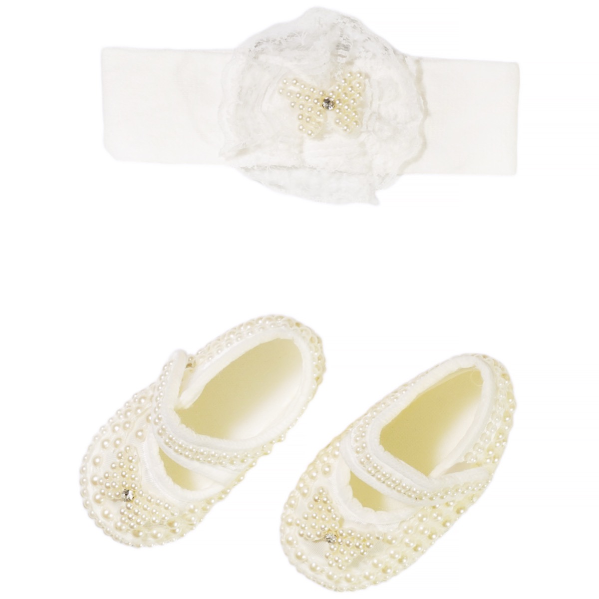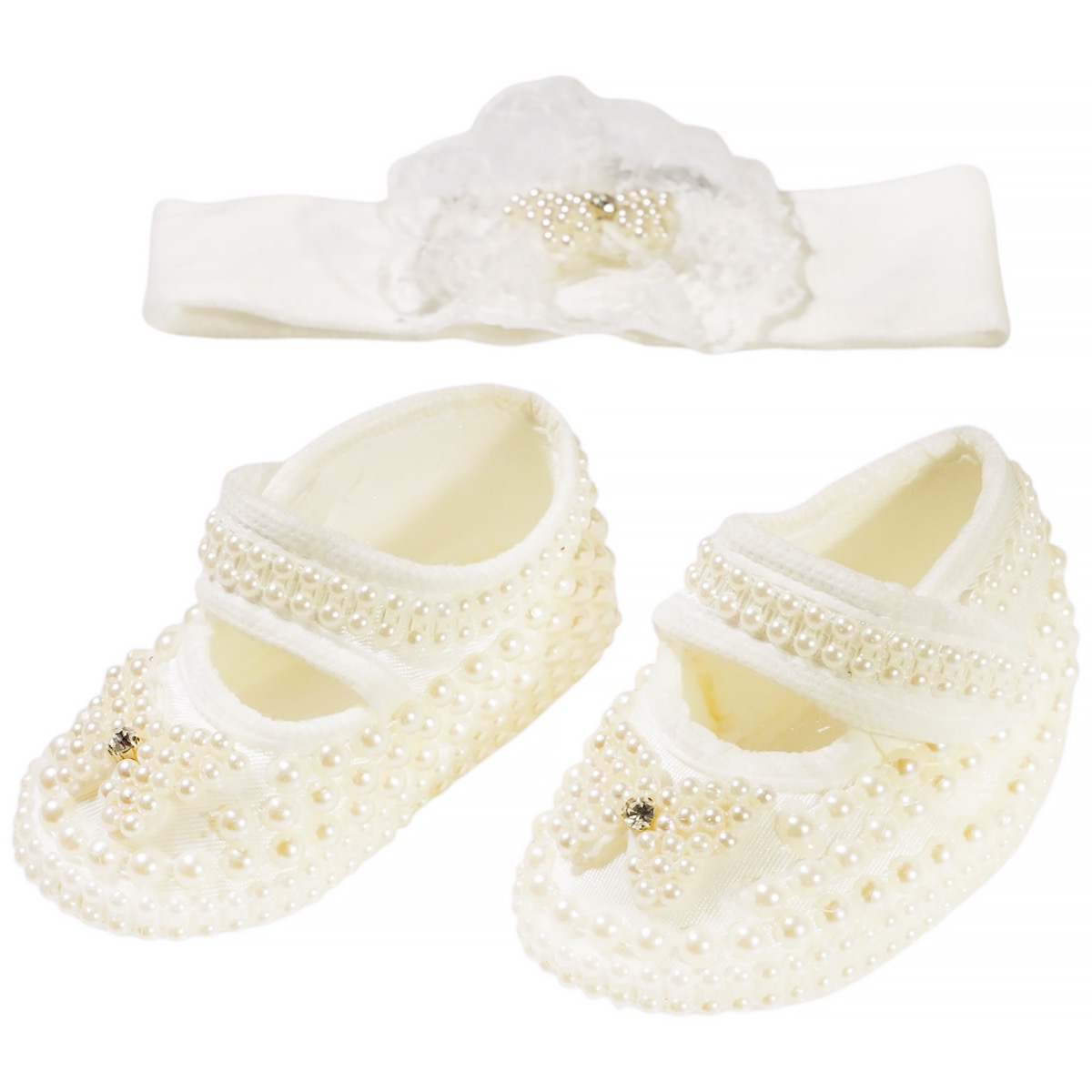 Δώστε στα μωράκια σας την απόλυτη κομψότητα με τα εκρού βρεφικά παπουτσάκια αγκαλιάς και την ασορτί κορδέλα από τη μάρκα Mir Baby. Αυτά τα παπουτσάκια είναι ιδανικά για τα μικρά πατουσάκια, κατασκευασμένα από μαλακό ύφασμα που εξασφαλίζει άνεση κατά τη διάρκεια της ημέρας. Η διακόσμηση με πέρλες προσθέτει μια γλυκιά και κομψή πινελιά, κάνοντάς τα ιδανικά για κάθε περίσταση. Η μπαρέτα στο επάνω μέρος και το άνοιγμα με βέλκρο διευκολύνουν την εφαρμογή και την αφαίρεση, εξασφαλίζοντας πρακτικότητα για τους γονείς. Η ασορτί κορδέλα για τα μαλλιά ολοκληρώνει το σύνολο, προσφέροντας μια όμορφη και στιλάτη αίσθηση. Επιλέξτε αυτό το σετ και κάντε κάθε στιγμή του μωρού σας ακόμα πιο ξεχωριστή και στιλάτη! Μέγιστο μήκος πέλματος: 0-6 μηνών: 9,00 cm