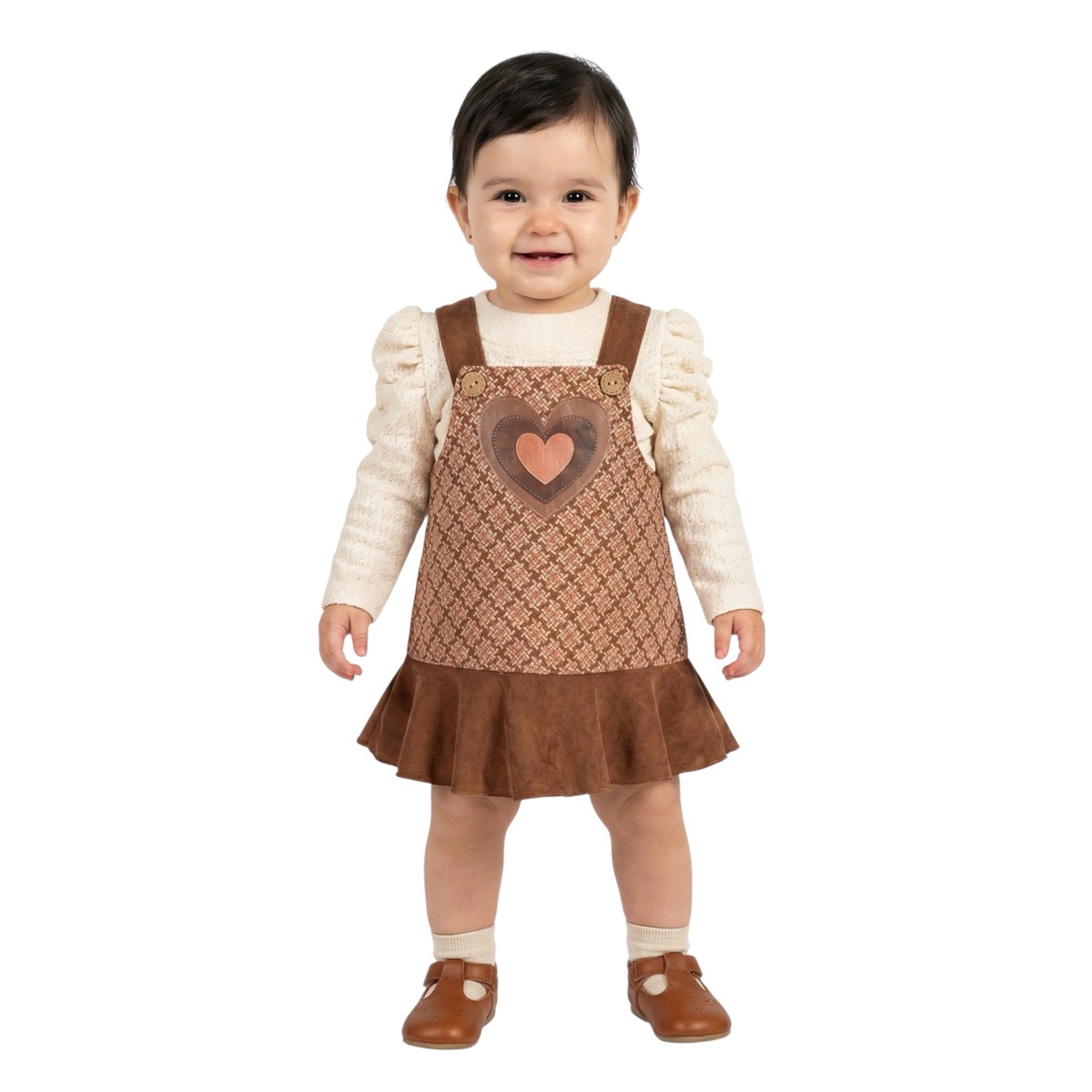 Ανακαλύψτε το φορεματάκι με τιράντες και μπλουζίτσα της Misse Kids, ιδανικό για κάθε κοριτσάκι! Το καφέ φορεματάκι από 100% πολυεστέρα συνδυάζεται τέλεια με την μπεζ μονόχρωμη δαντελένια μπλουζίτσα, προσφέροντας μια κομψή και στιλάτη εμφάνιση. Το άνοιγμα με κουμπιά στο επάνω μέρος διευκολύνει την εφαρμογή, ενώ η δαντελένια μπλουζίτσα προσθέτει μια ρομαντική και παιχνιδιάρικη αίσθηση. Το άνοιγμα με κουμπιά στο πίσω μέρος εξασφαλίζει άνεση και ευκολία. Ιδανικό για τις εποχές της άνοιξης και του φθινοπώρου, το φορεματάκι είναι κατάλληλο για καθημερινές εμφανίσεις αλλά και για πάρτι. Επιλέξτε το φορεματάκι Misse Kids και προσφέρετε στο μωρό σας στυλ και άνεση σε κάθε του στιγμή!