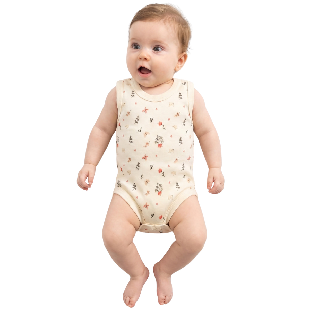 Οι πρώτες βόλτες γίνονται ακόμα πιο όμορφες με αυτό το λευκό αμάνικο βρεφικό κορμάκι από τη Nayinom. Γεμάτο με μικρά λουλουδάκια που απλώνονται σε όλο το ύφασμα, αποτελεί μια εξαιρετικά τρυφερή επιλογή για τα κοριτσάκια σας. Καθώς είναι προσεκτικά ραμμένο από 100% βαμβάκι, δημιουργεί μια φιλική αγκαλιά που σέβεται απόλυτα το ευαίσθητο δερματάκι τους, επιτρέποντάς τους να κινούνται και να παίζουν ελεύθερα. Παράλληλα, τα πρακτικά τρουκς που βρίσκονται στο κάτω μέρος διευκολύνουν σημαντικά τη δική σας καθημερινότητα, αφού κάνουν την αλλαγή της πάνας μια πολύ γρήγορη διαδικασία, χωρίς να διακόπτεται η ηρεμία τους. Φορέστε το στις μικρές σας μόνο του τις ηλιόλουστες μέρες ή συνδυάστε το αρμονικά με μια ελαφριά ζακέτα και ένα σορτσάκι, προσφέροντάς τους μια απόλυτα στιλάτη και άνετη εμφάνιση για κάθε περίσταση.